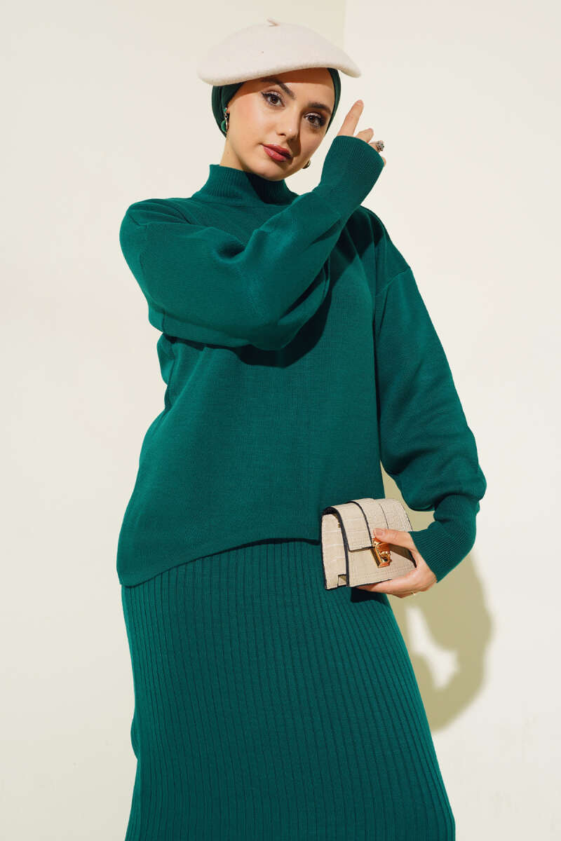 Çoban Dikişli Triko Tunik İkili Takım Nefti