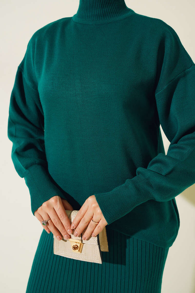 Bisiklet Yaka Yumoş Triko Kazak Mint Yeşili