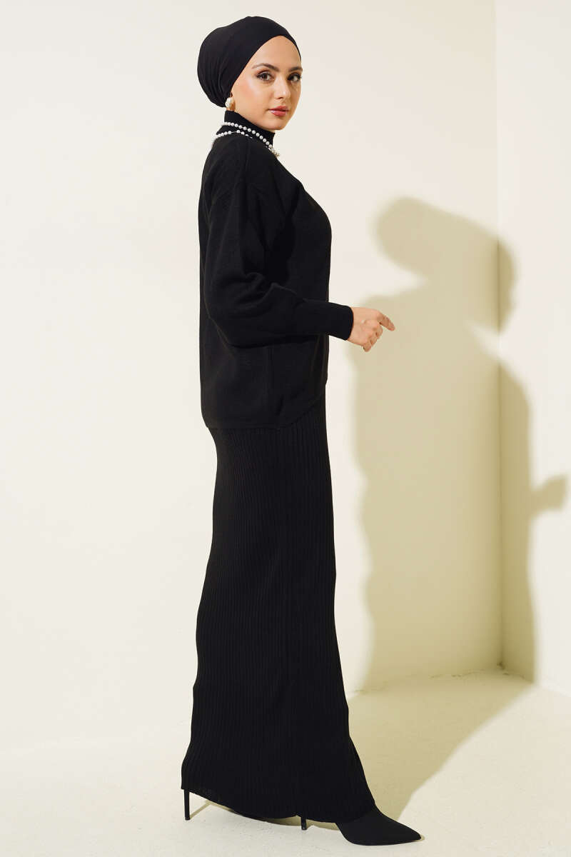 Çapraz Bağlamalı Triko Takım Siyah