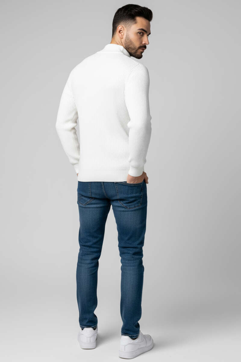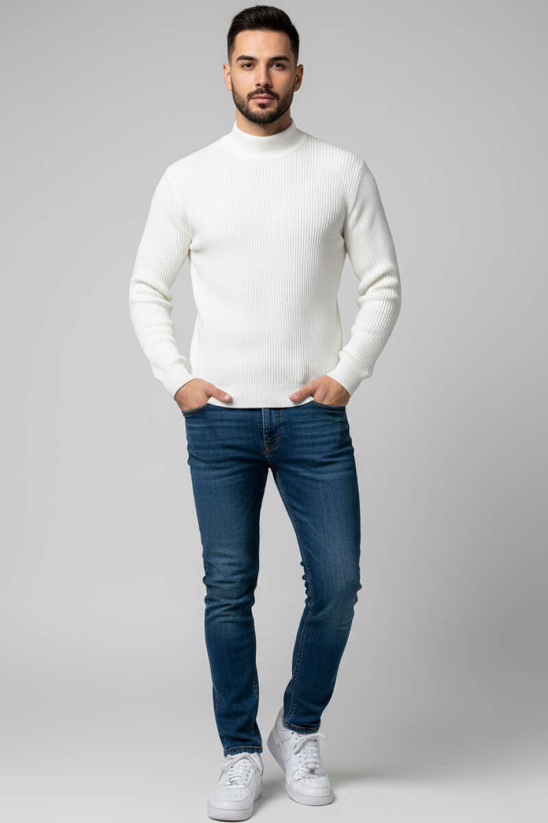 Yıldızlı Örgü Triko Erkek Kazak Krem