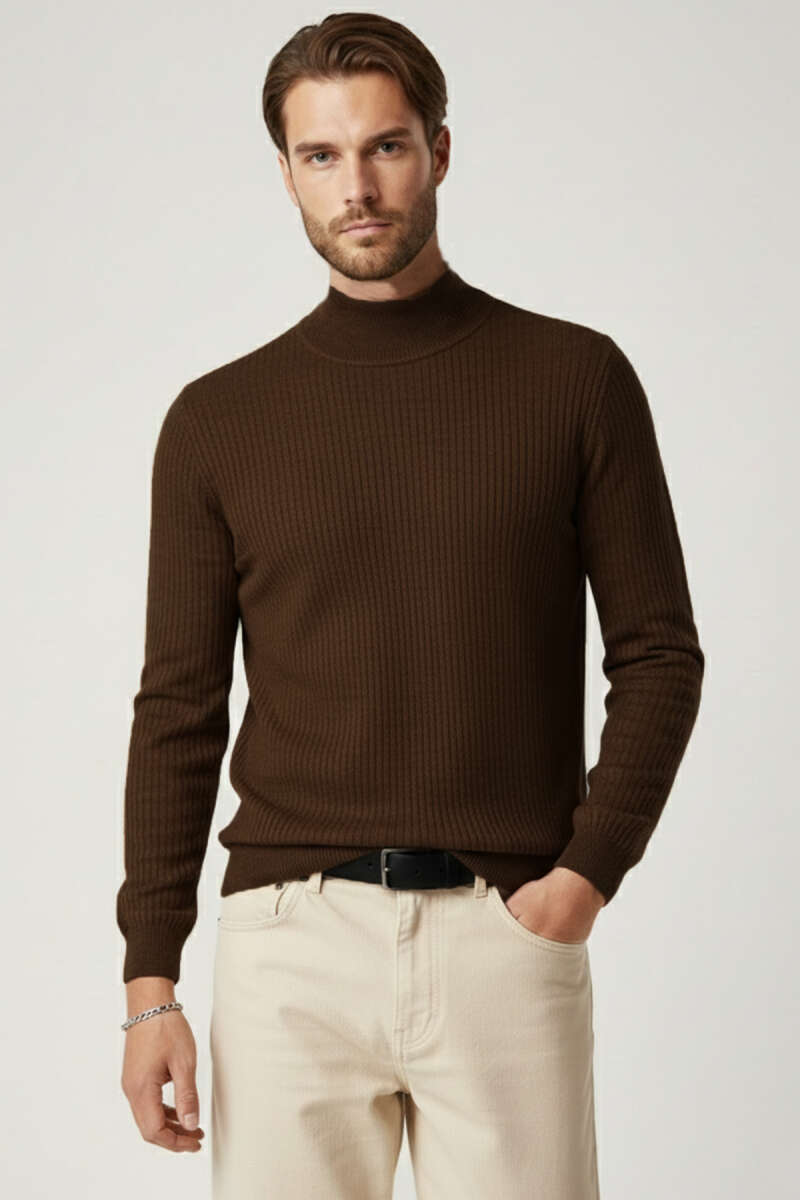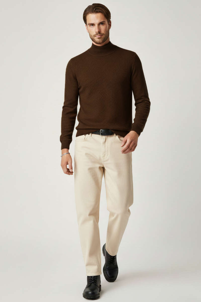 Yarım Balıkçı Örgü Triko Erkek Kazak Taş