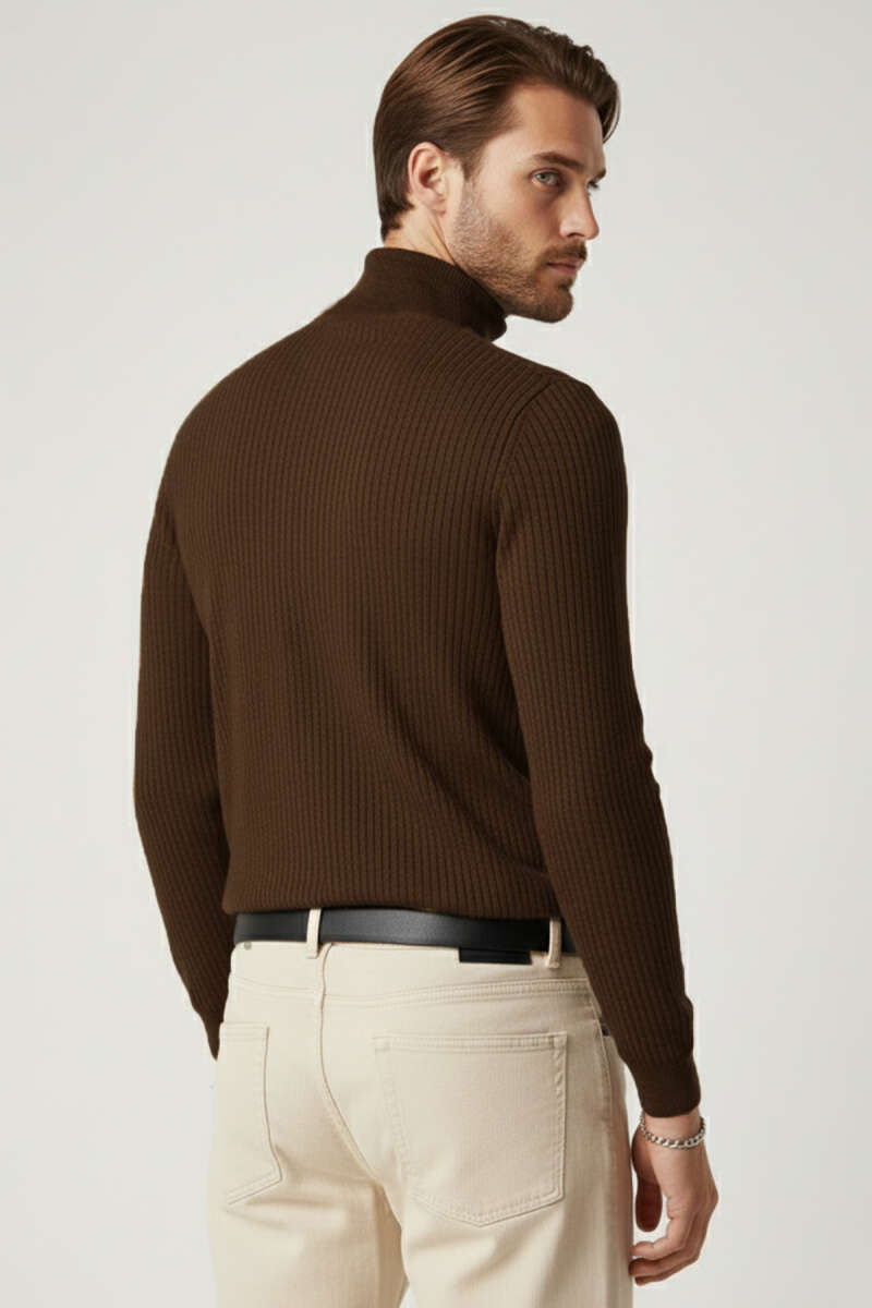 Yarım Balıkçı Örgü Triko Erkek Kazak Füme