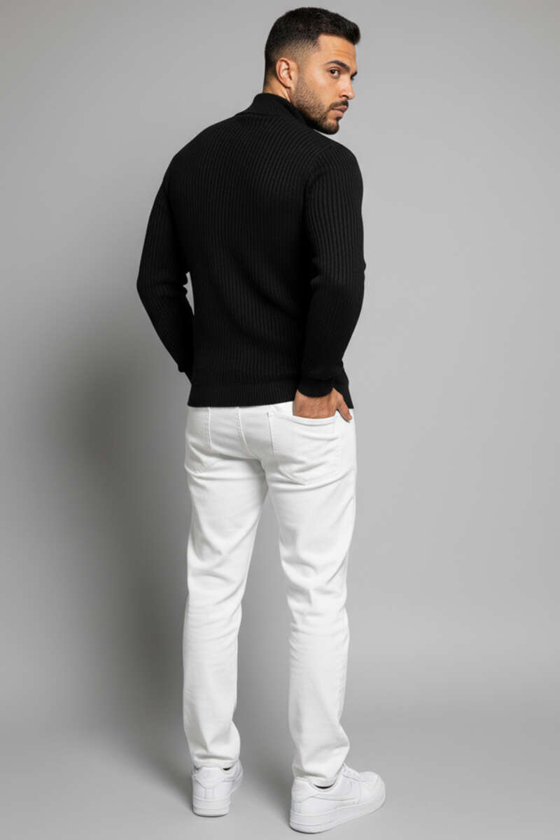 Yarım Balıkçı Örgü Triko Erkek Kazak Beyaz