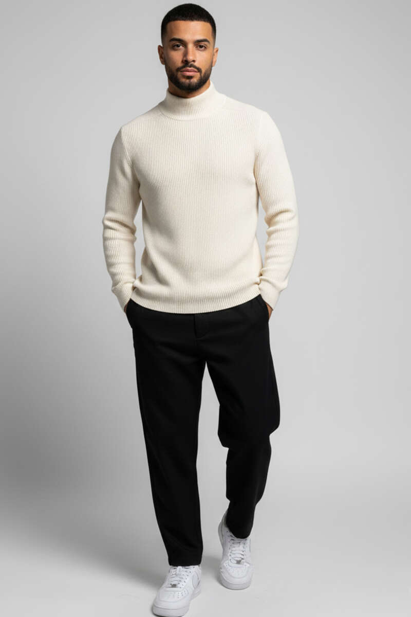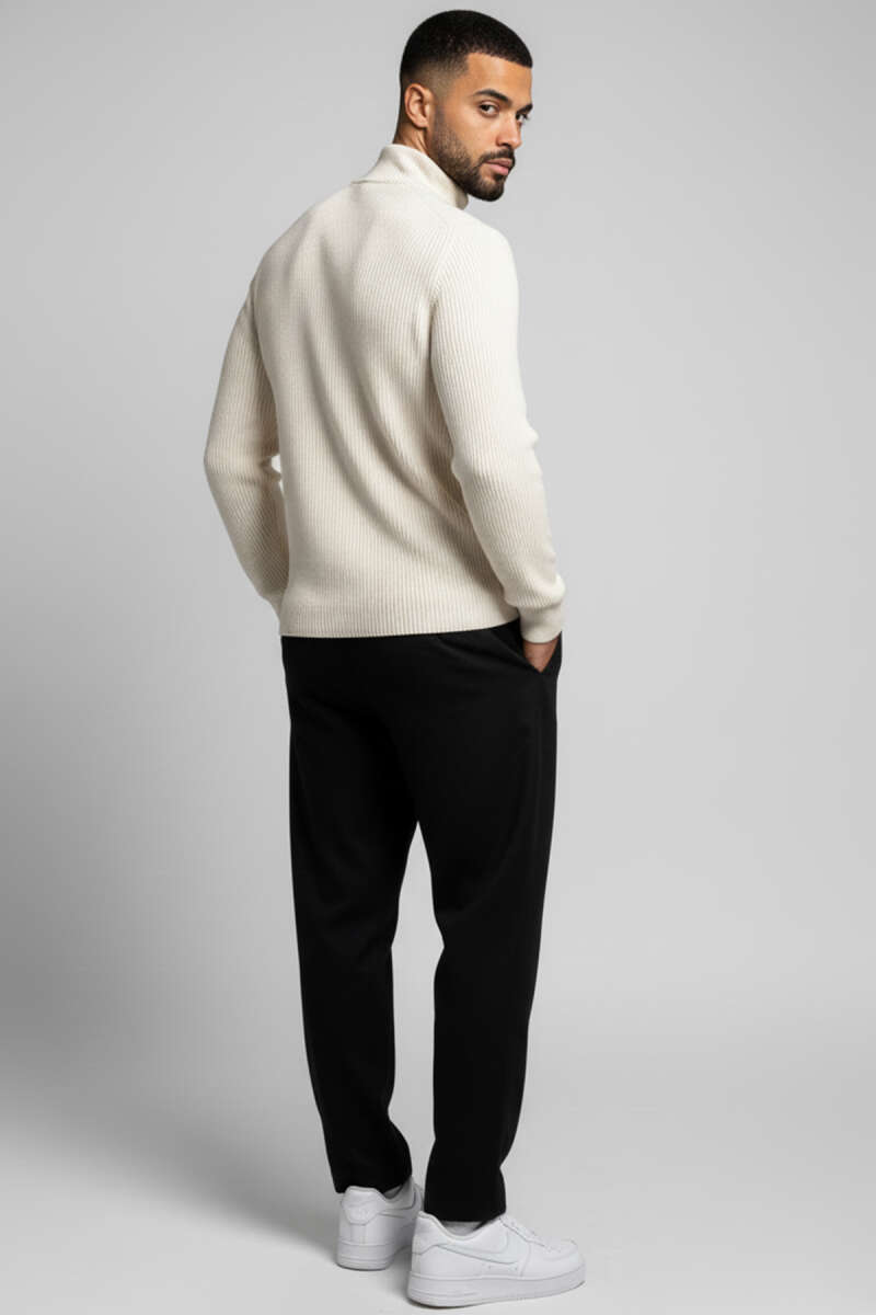 Yarım Balıkçı Örgü Triko Erkek Kazak Beyaz