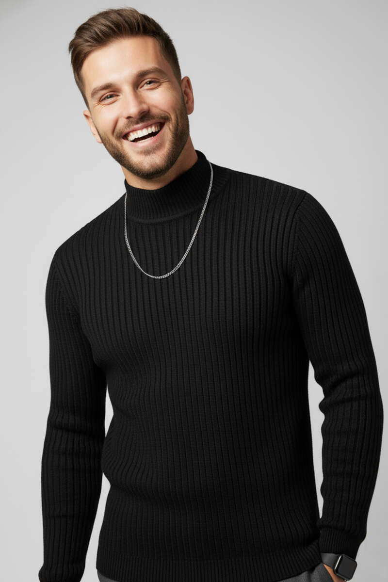 Küçük Kalp Nakışlı Triko Kazak Siyah