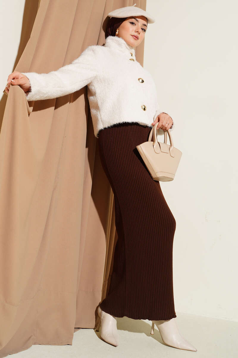 Dik Yaka Kuşaklı Sakallı Ceket Kahve