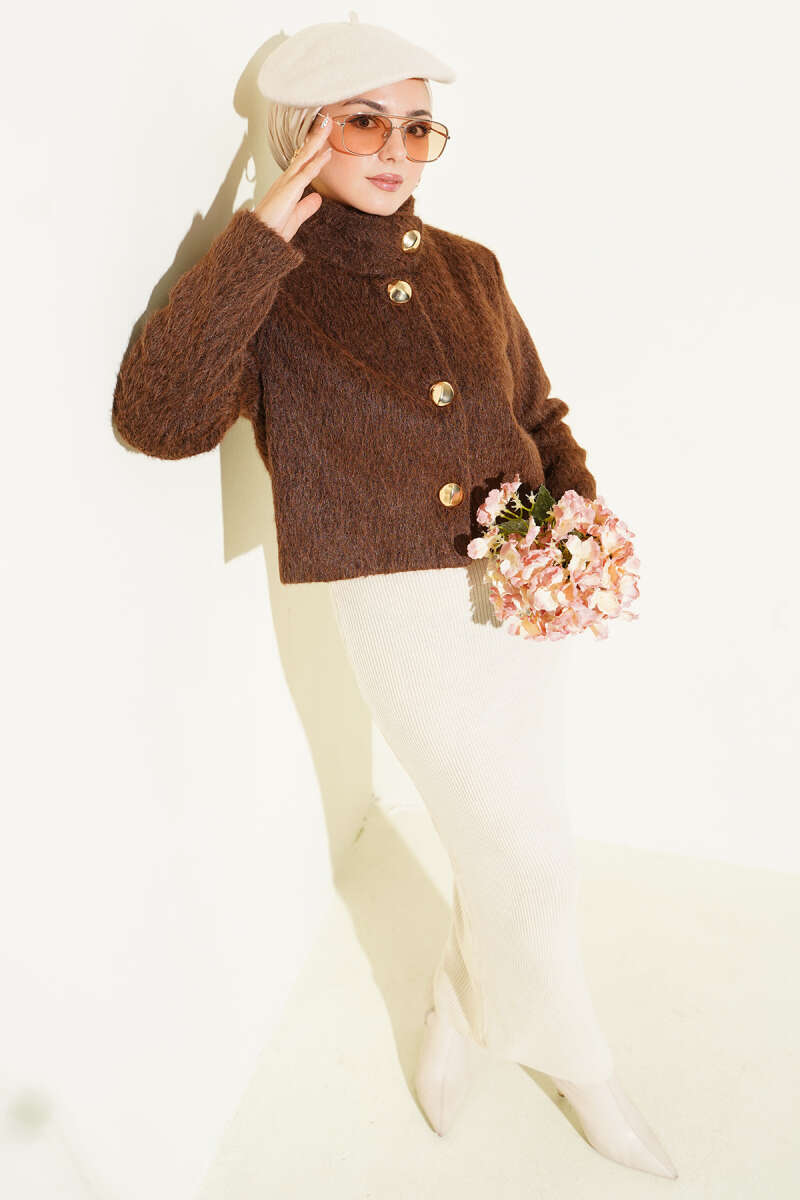 Yarım Balıkçı Yaka Gold Düğmeli Ceket Kahve