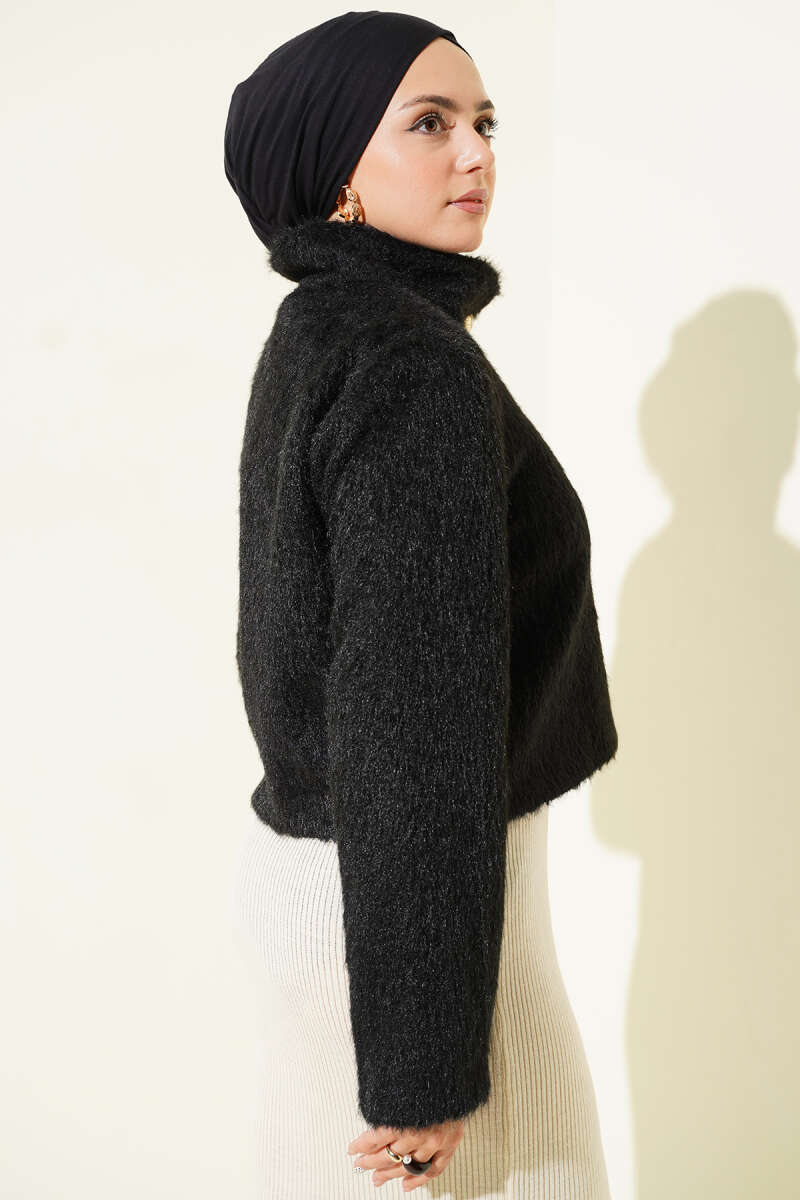 Yakası Fermuarlı Peluş Sweatshirt Ekru
