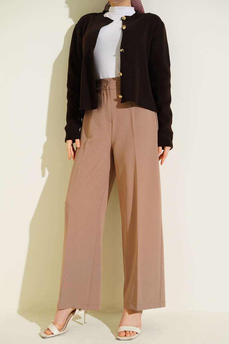 Yarım Bel Lastikli Basic Pantolon Latte