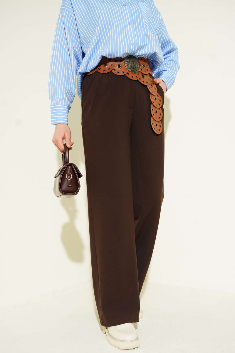 Cırtlı Palazzo Pantolon Kahve