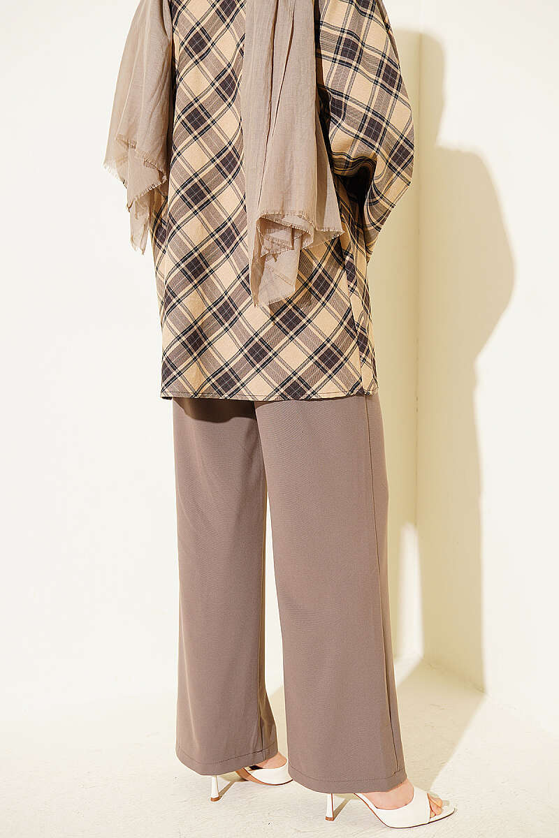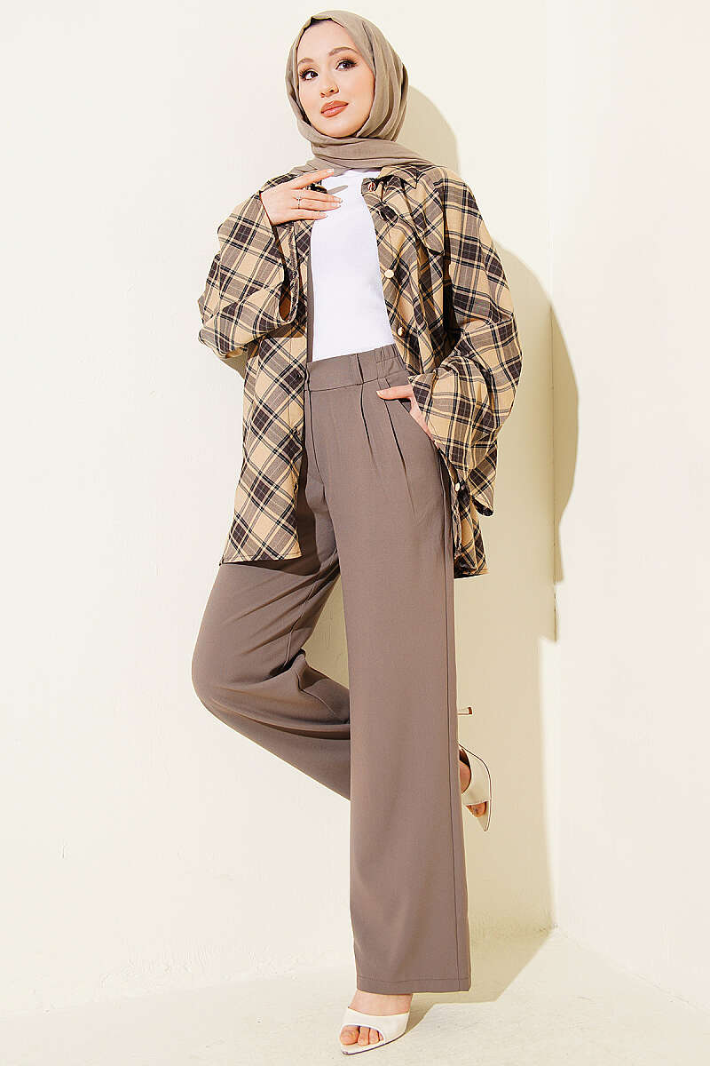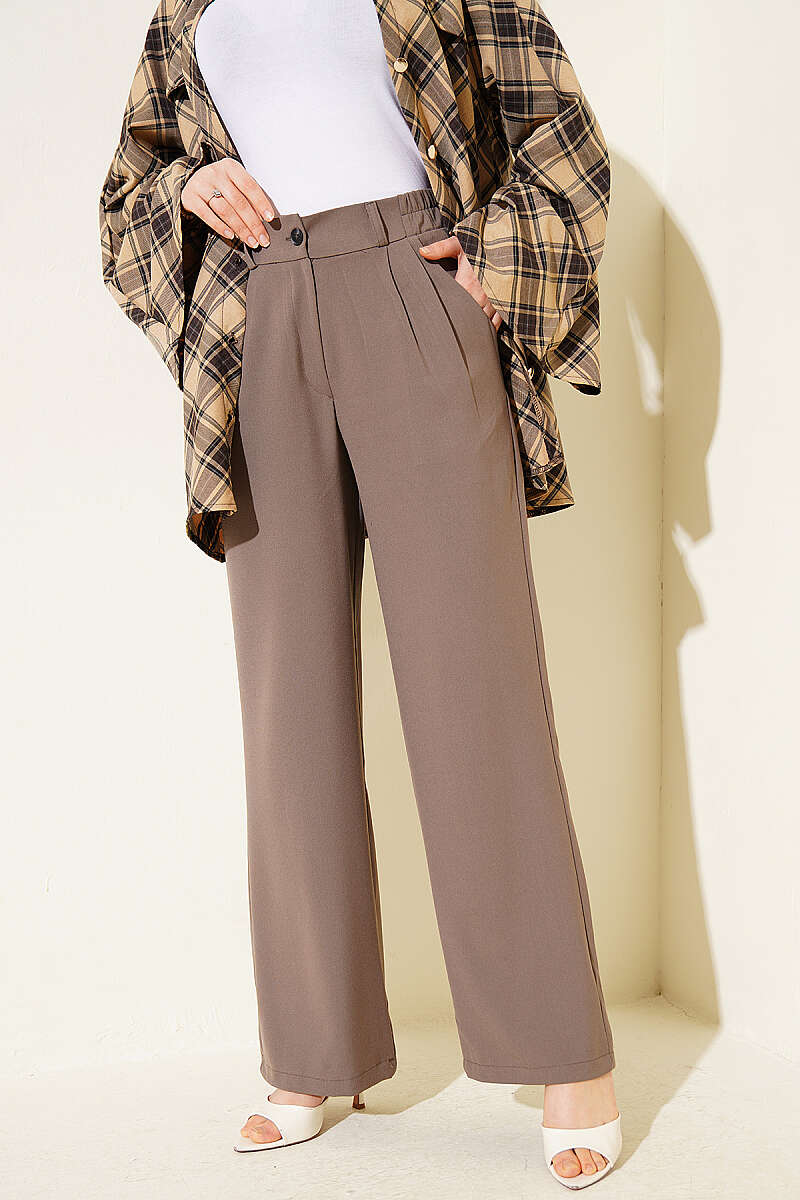 Yarım Bel Lastikli Palazzo Pantolon Vizon