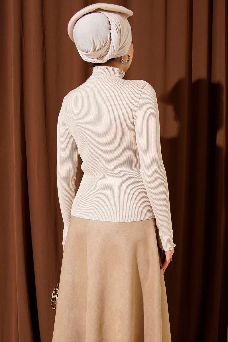 Beli Lastikli Kloş Basic Etek Bej