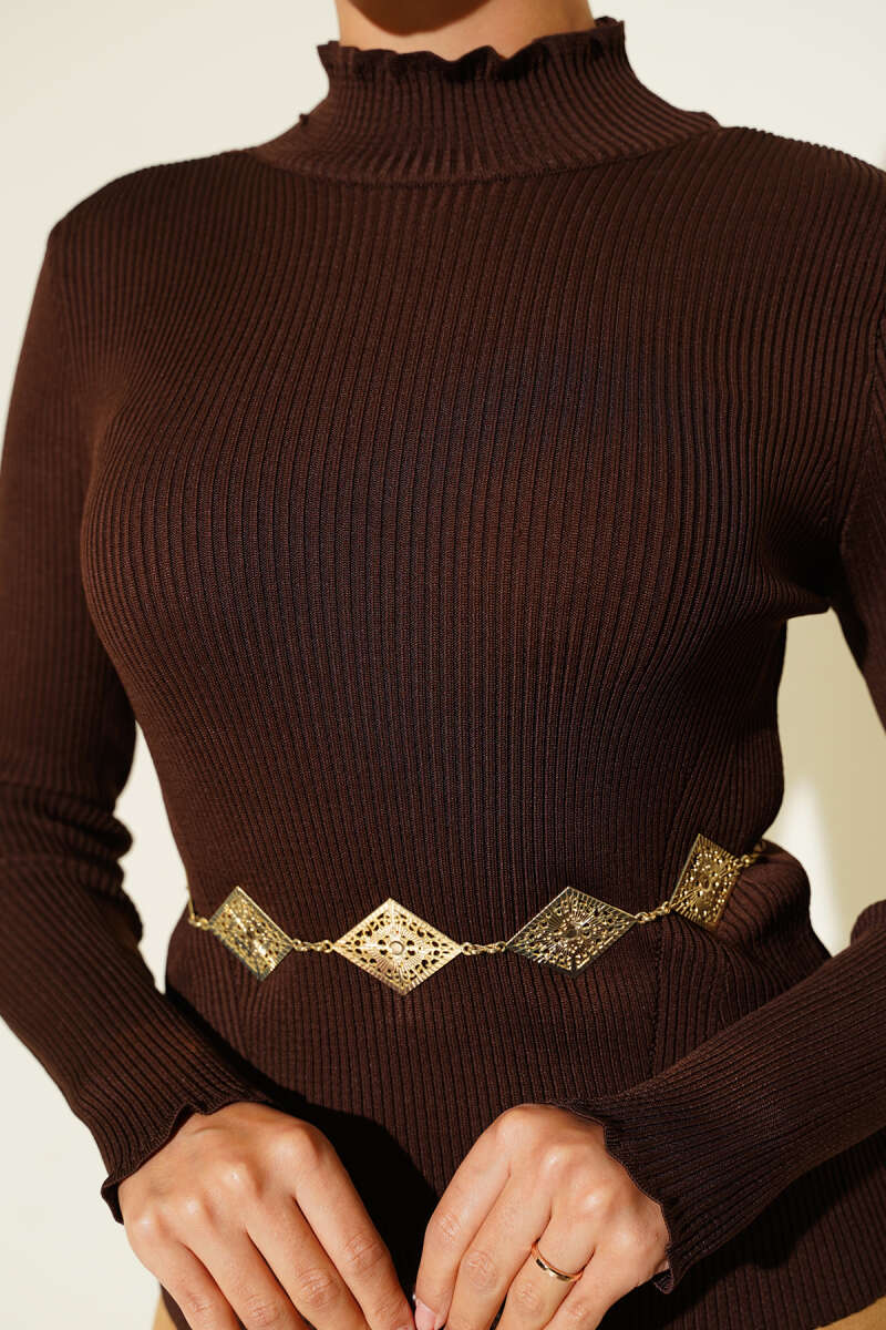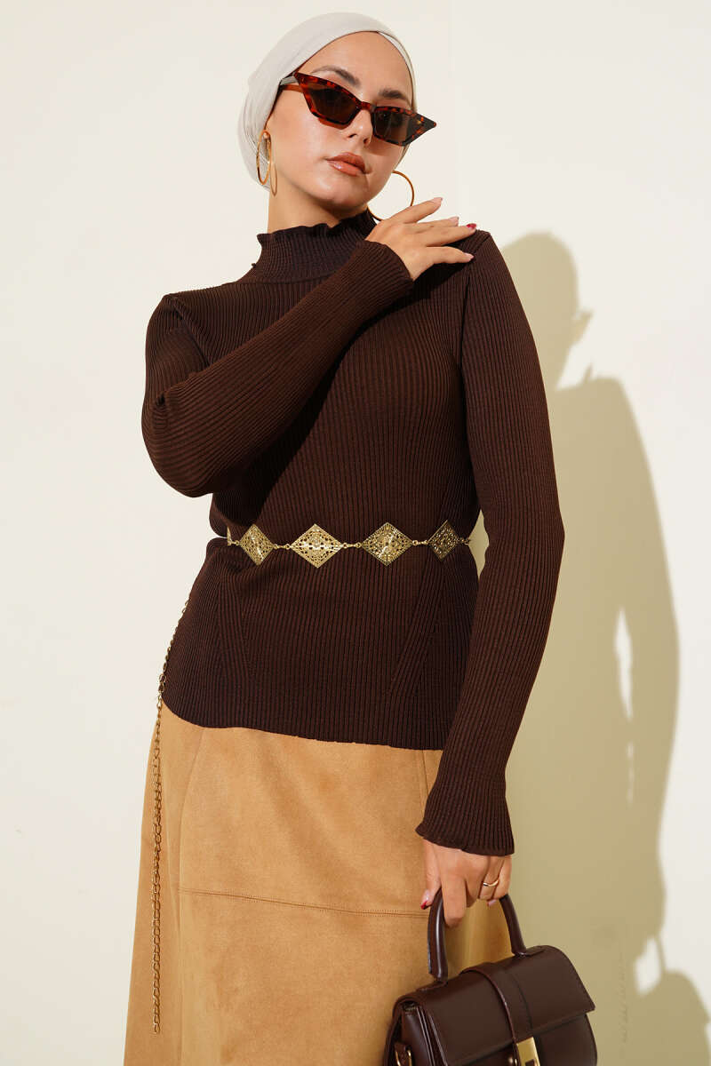 Yan Yırtmaçlı Duble Kol Tunik Kestane