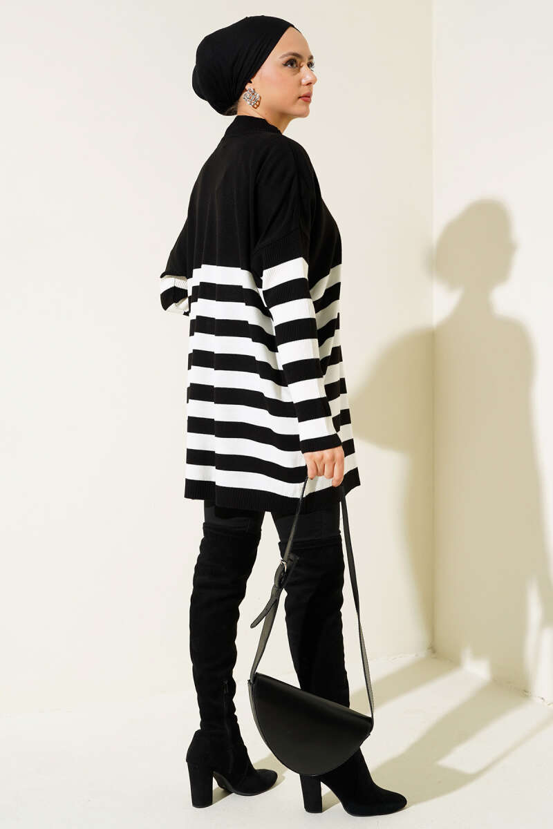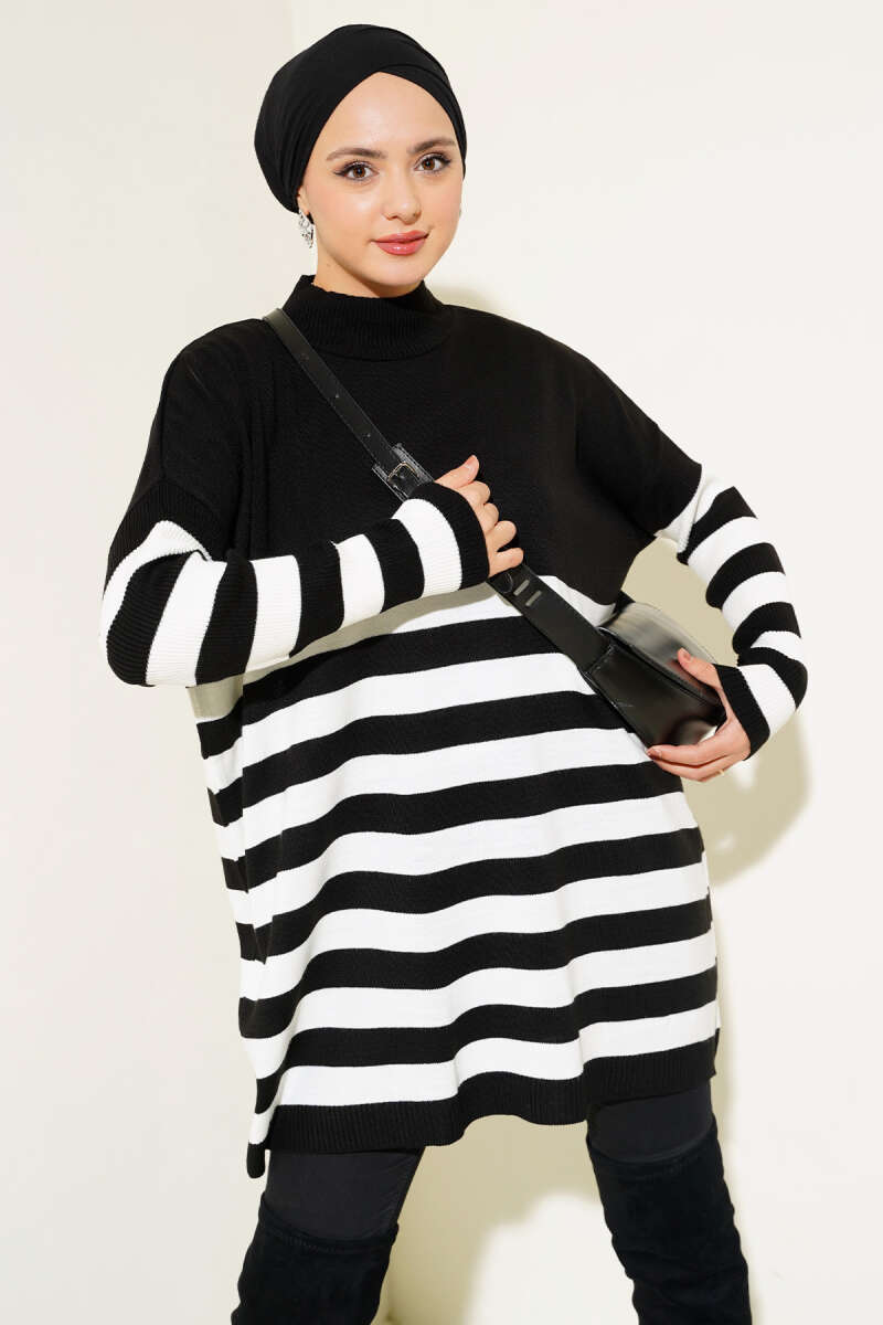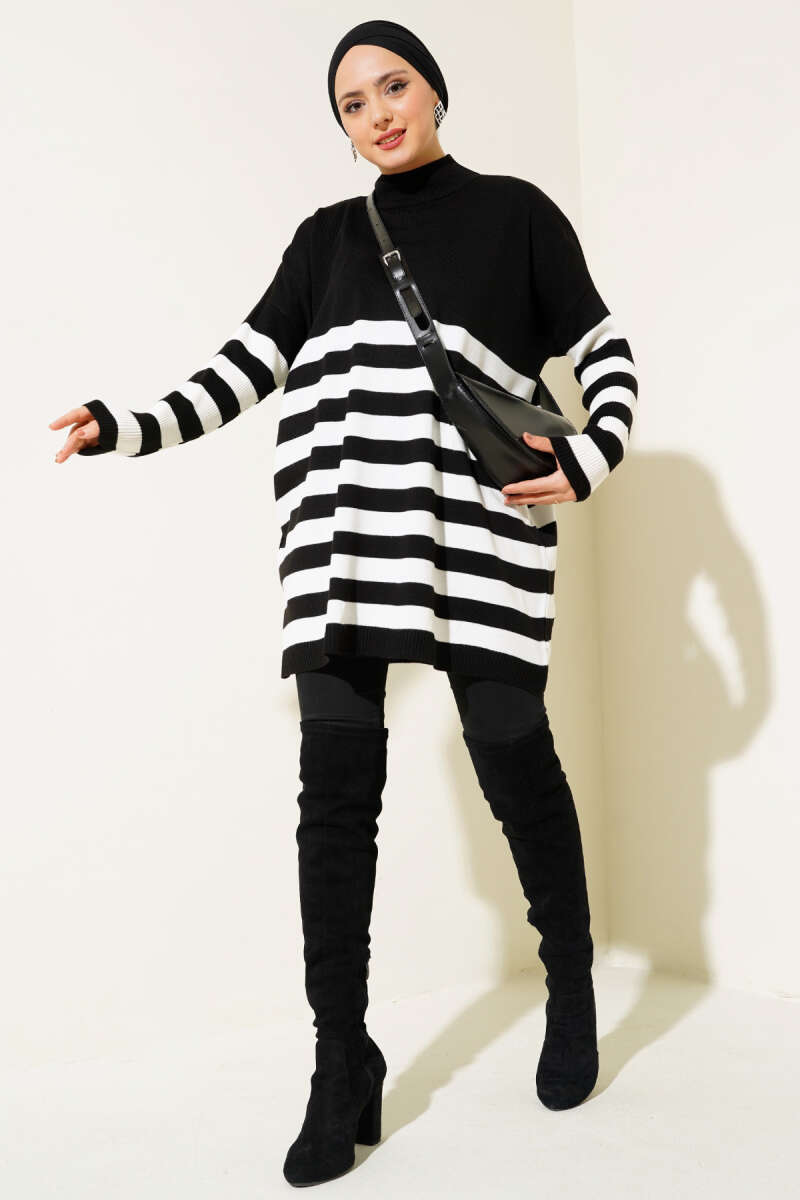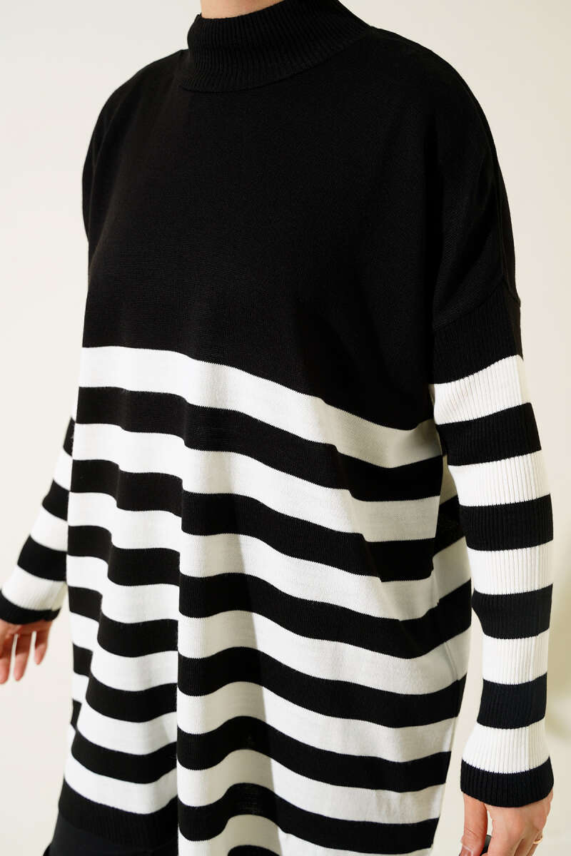 Gömlek Yaka Çizgili Triko Tunik Siyah