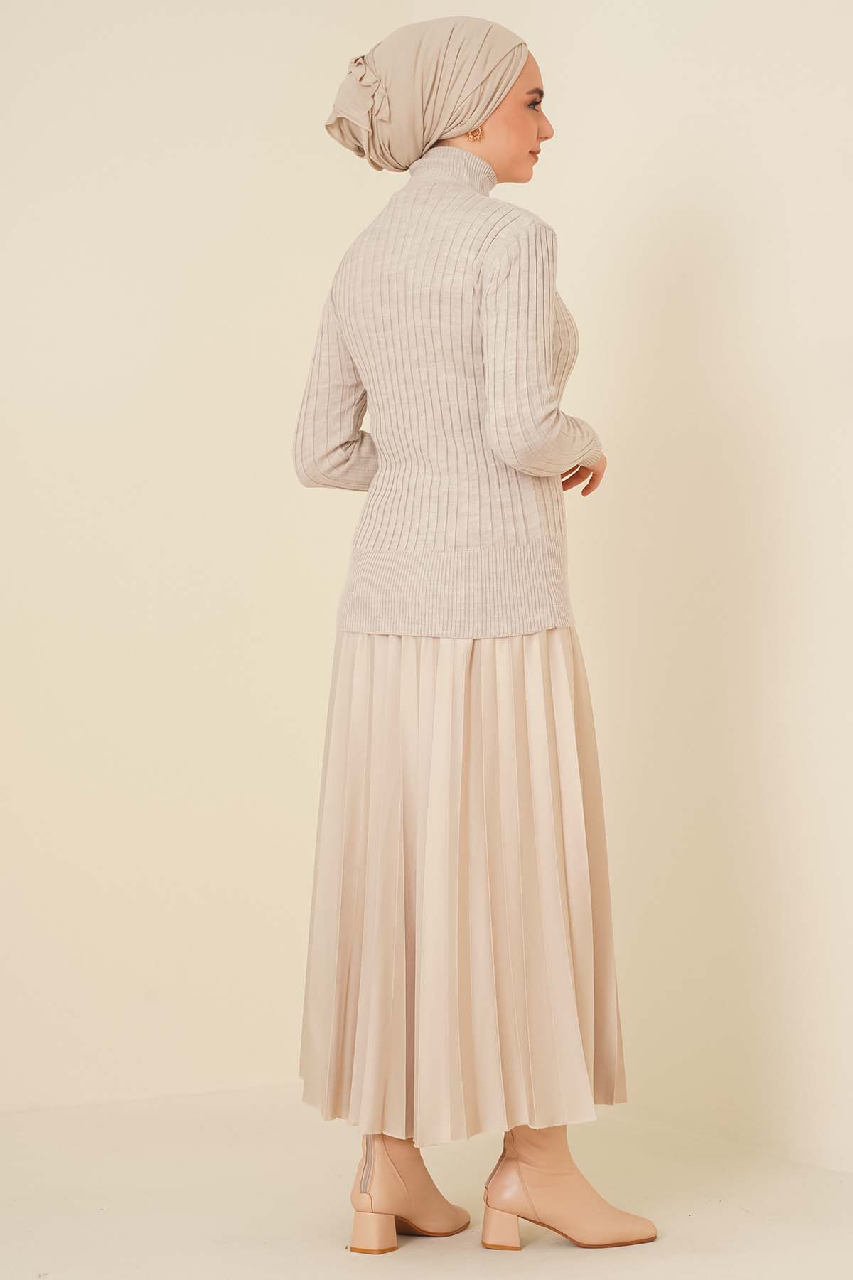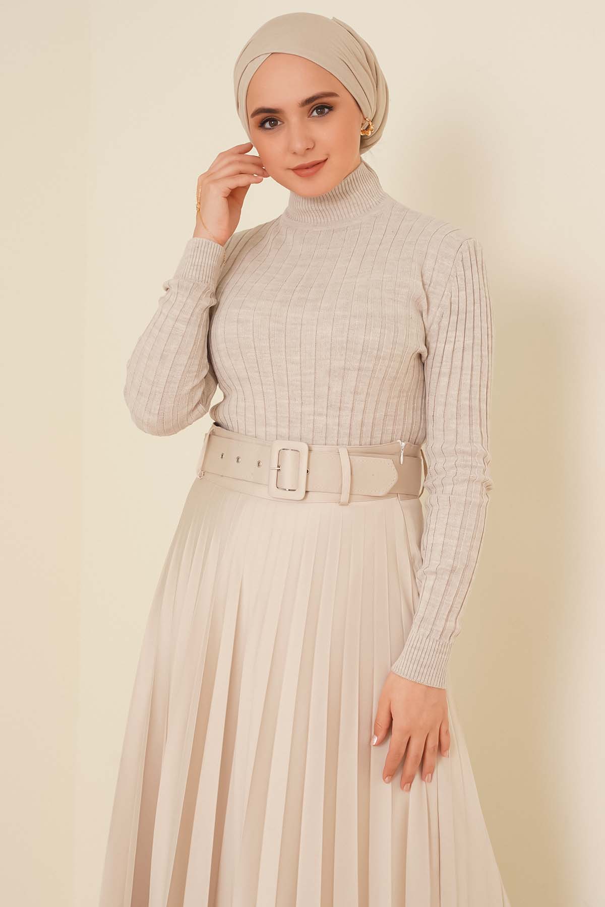 Basic Sakallı Yumoş Triko Tunik Ekru