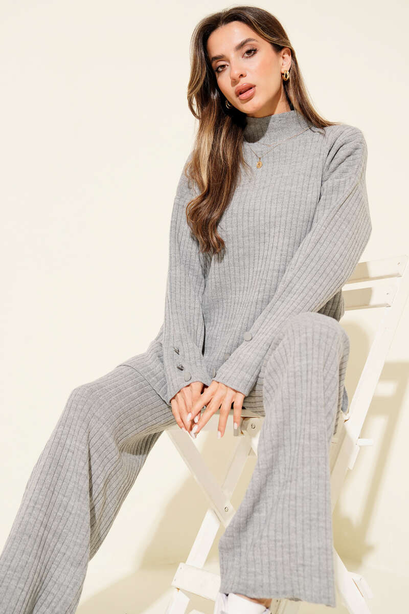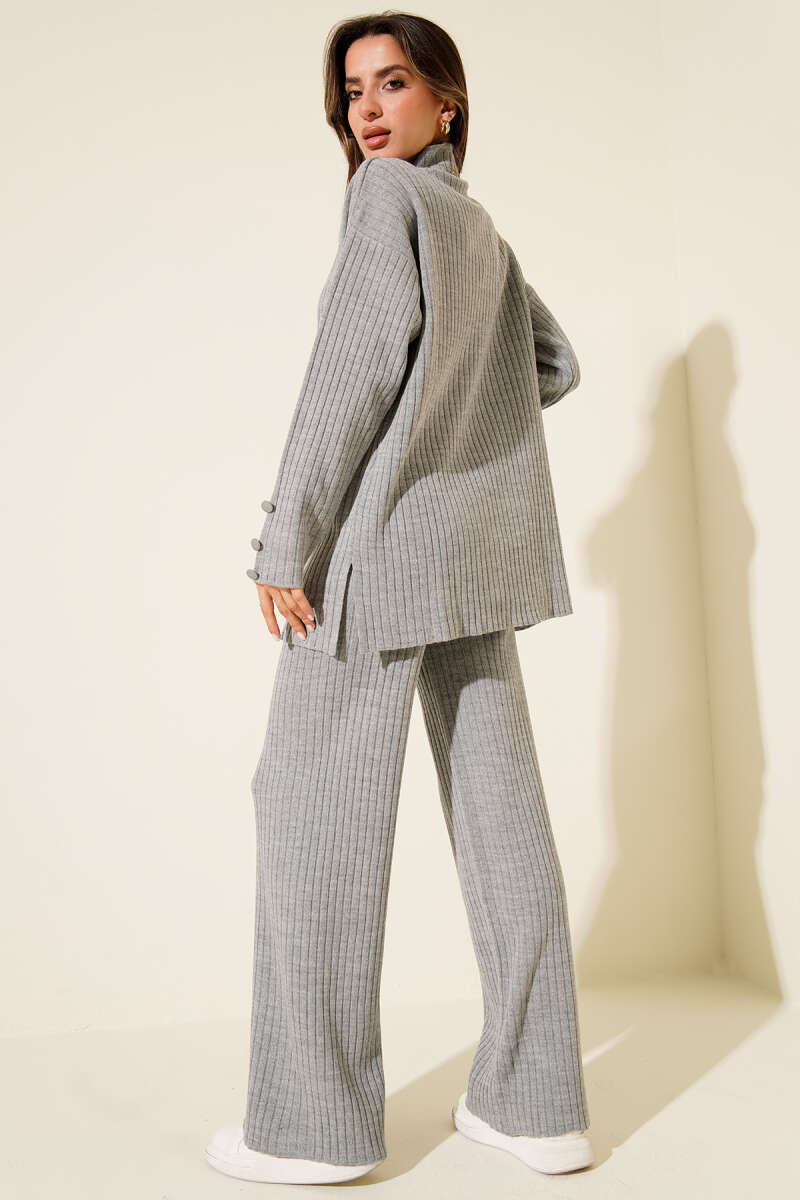 Yarım Boğazlı Fitilli Triko İkili Takım Siyah