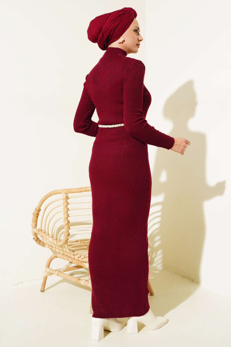 Metal Düğme Süslemeli Bağcıklı Elbise Vizon