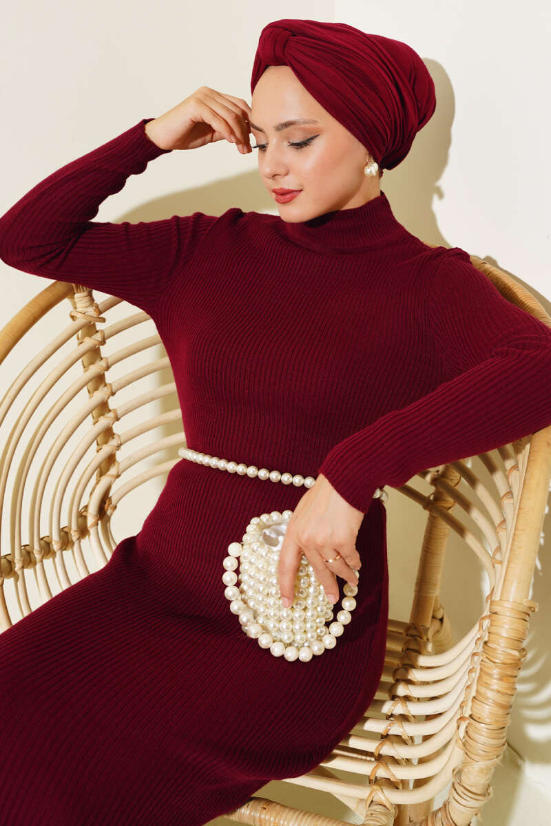 Kol Ucu Armalı İp Bağcıklı Elbise Kahve