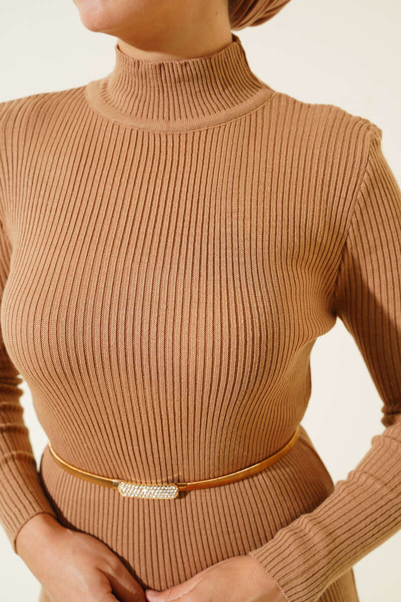 Gömlek Yaka Düğmeli Triko Elbise Kahve
