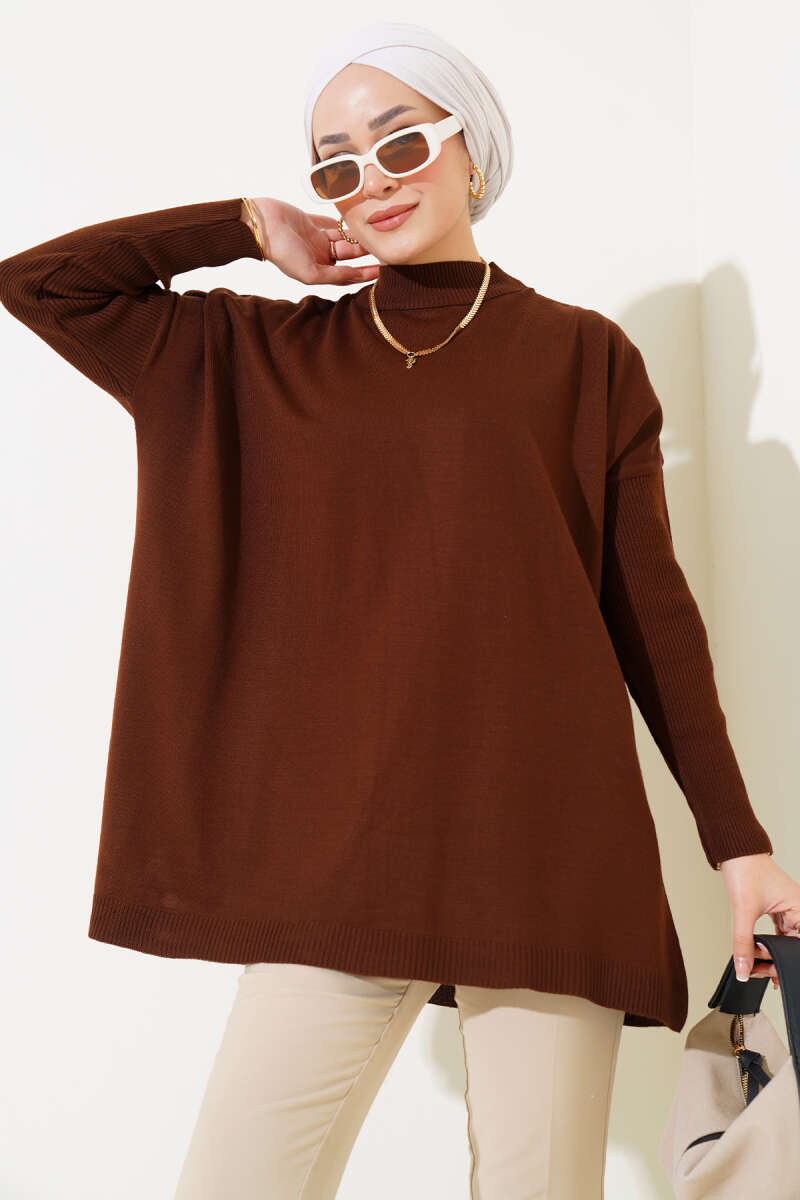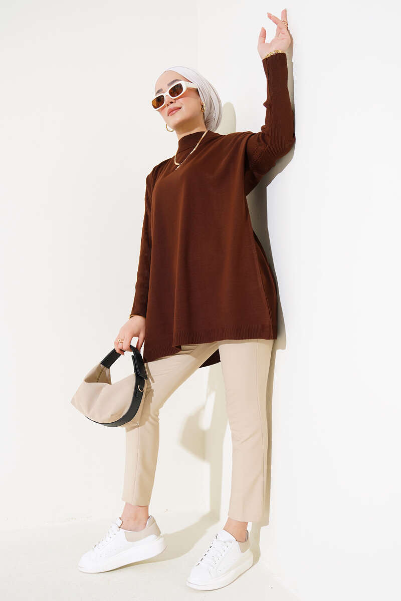 Salaş Bisiklet Yaka Simli Triko Tunik Vizon