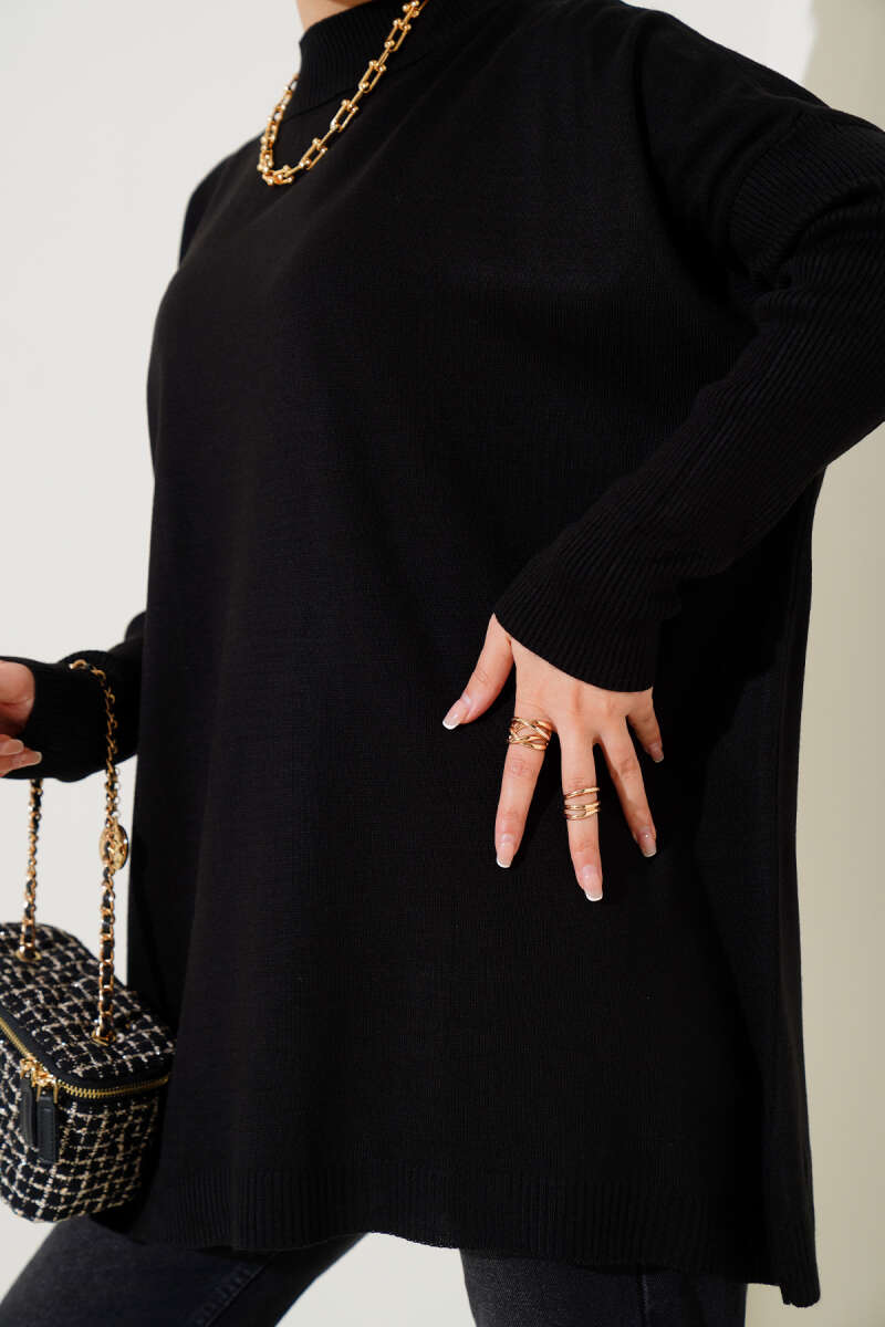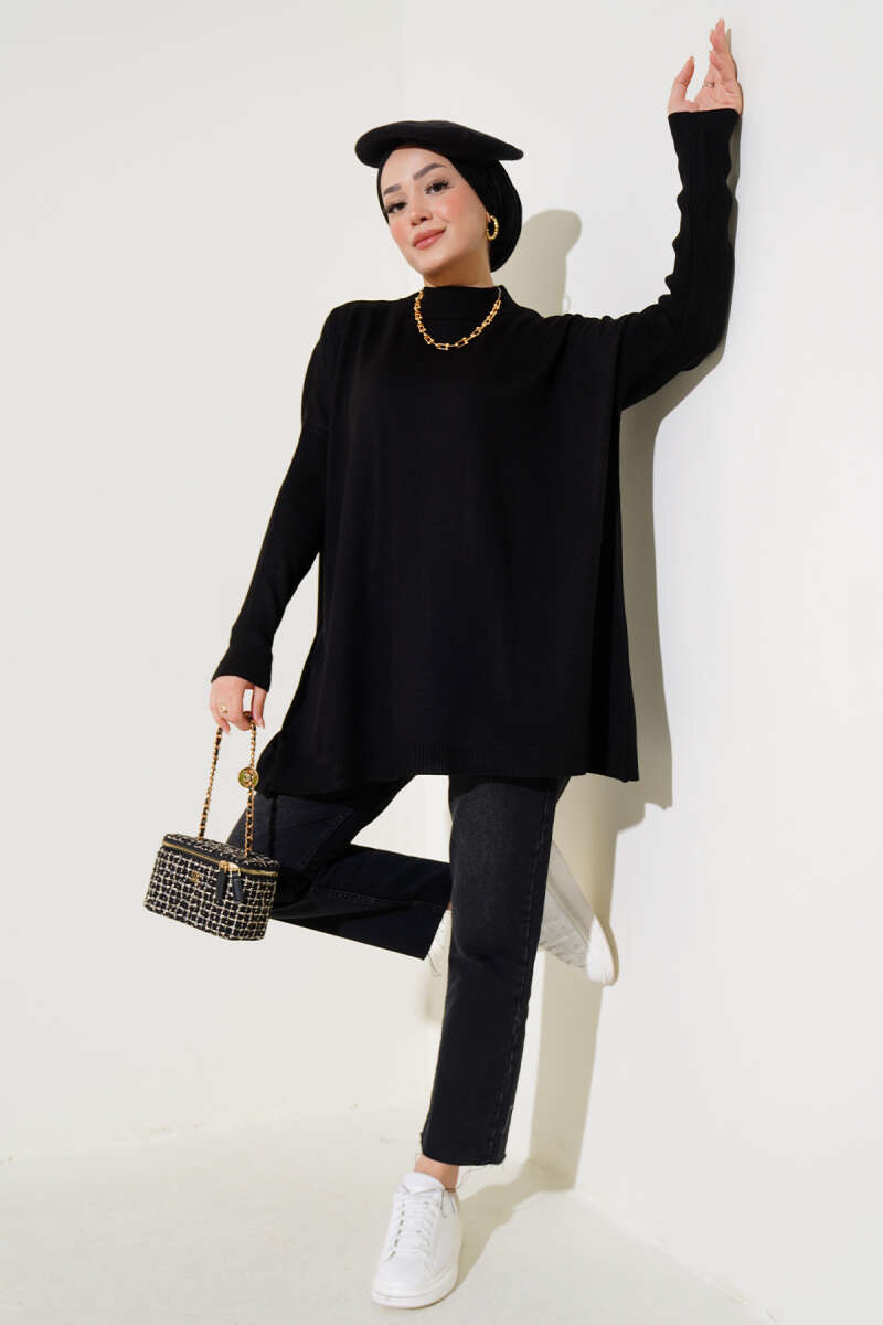 Kare Kabartmalı Yumoş Triko Tunik Siyah