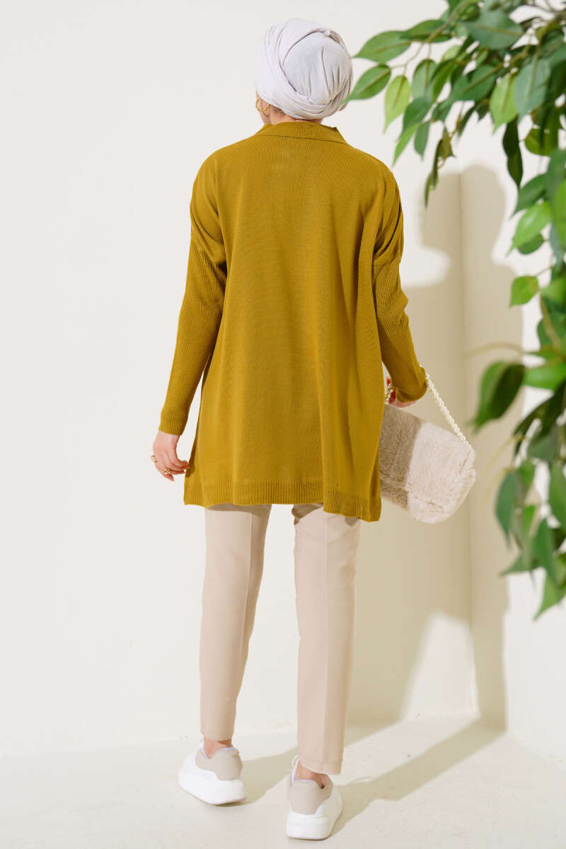Saten Yaka Fularlı Triko Tunik Sarı