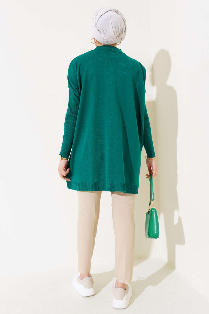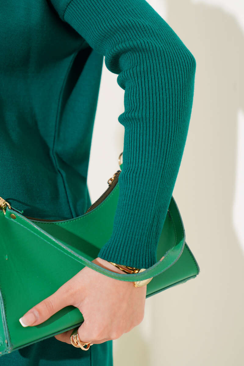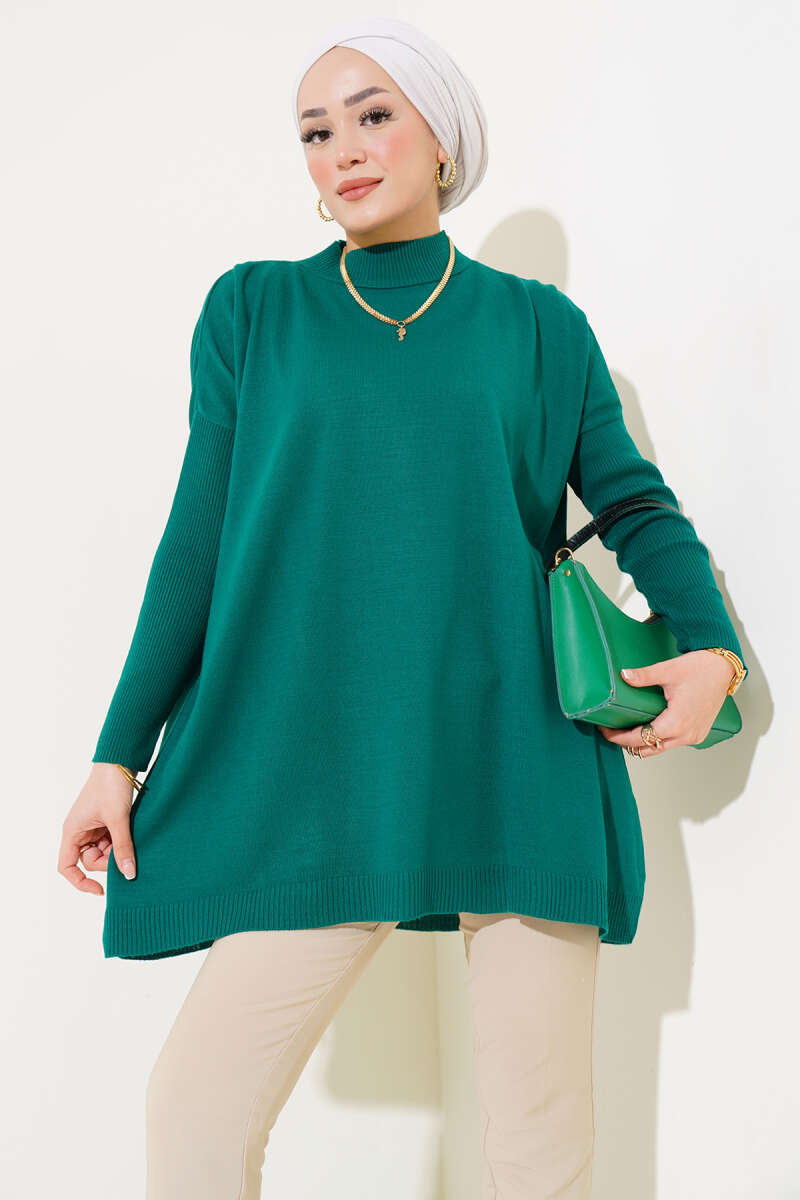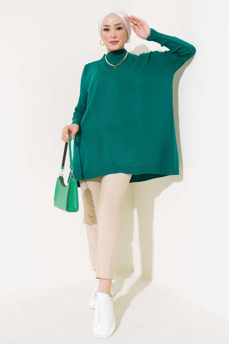 Kare Kabartmalı Yumoş Triko Tunik Yağ Yeşili