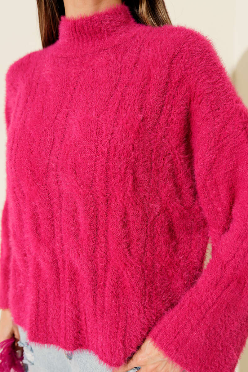 Kayık Yaka Yumoş Triko Kazak Bordo