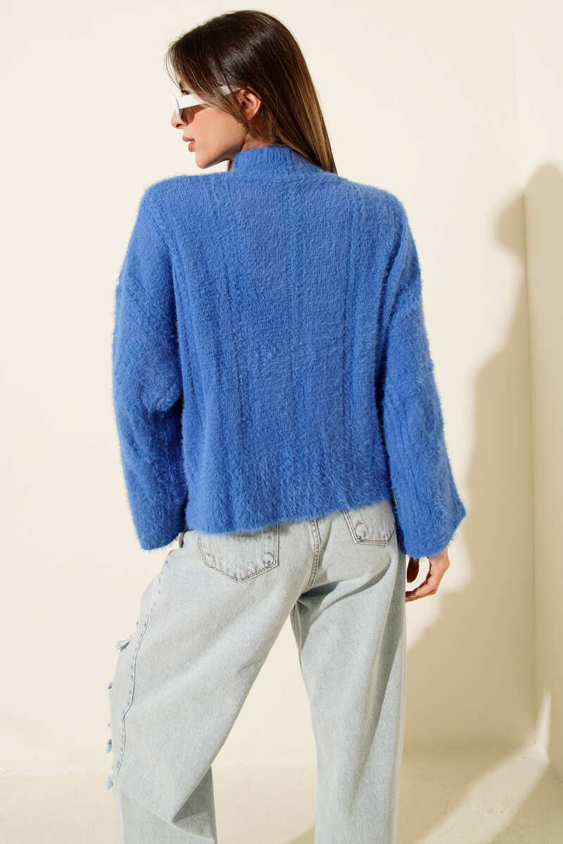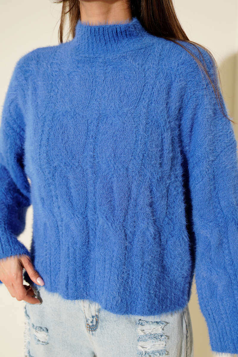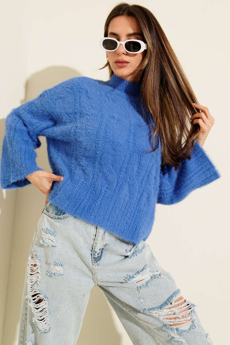 Kayık Yaka Yumoş Triko Kazak Bebe Mavi