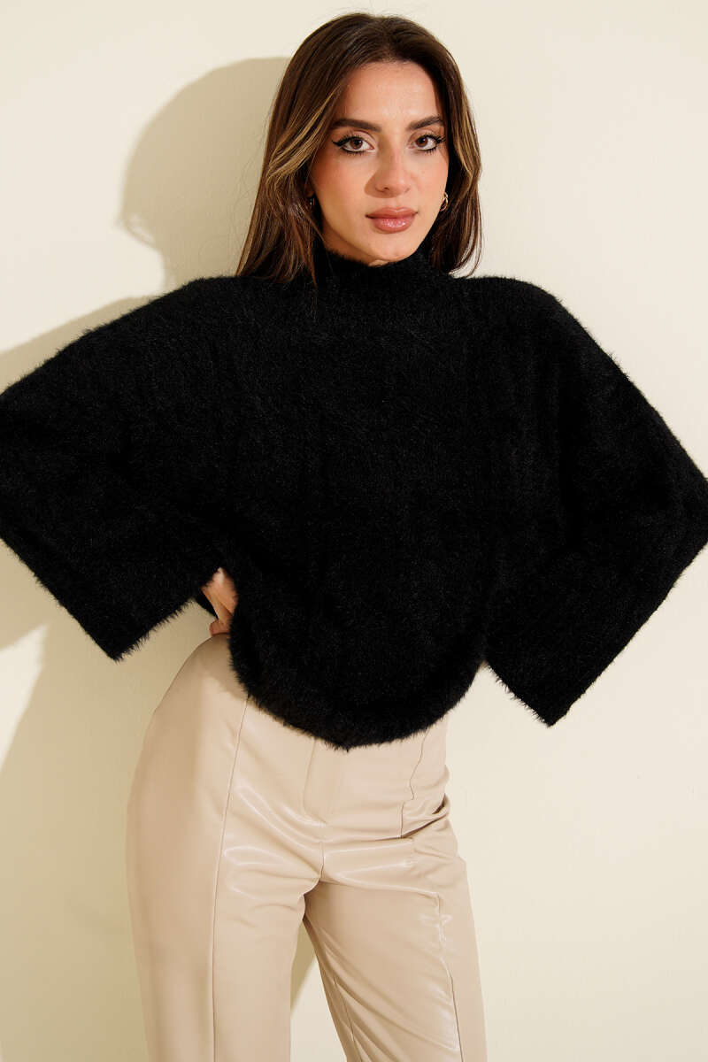 Basic Bisiklet Yaka Düz Triko Tunik Latte