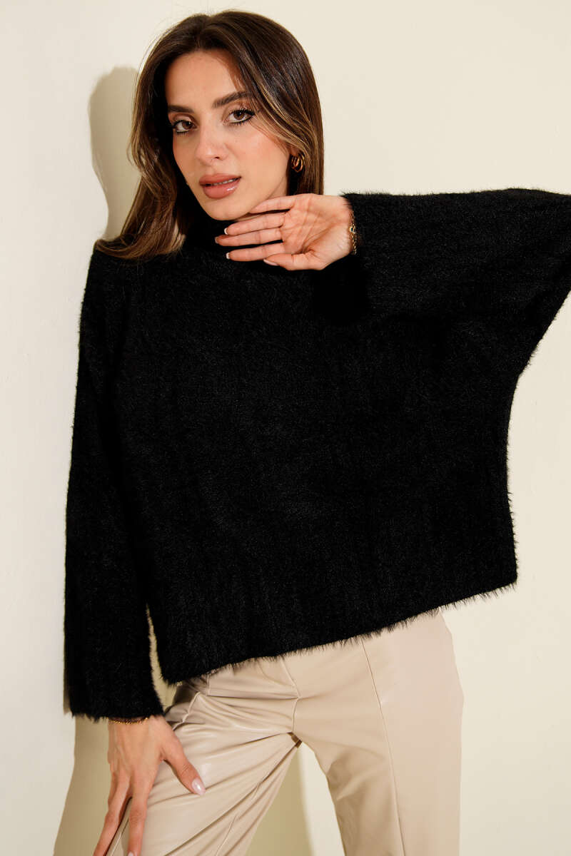 Kayık Yaka Yumoş Triko Kazak Kahve