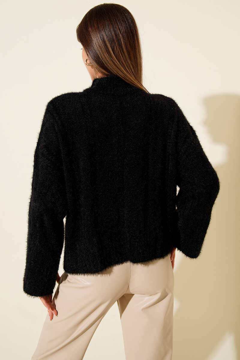 Yakası Yarım Fermuarlı Triko Elbise Kahve