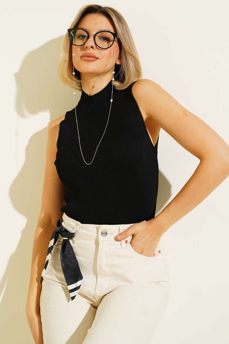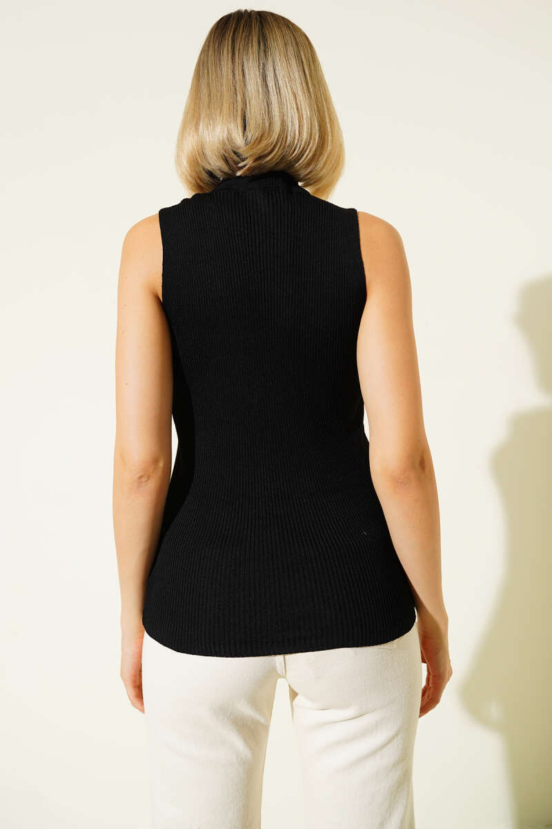 Yarım Boğazlı Sıfır Kol Triko Body Siyah