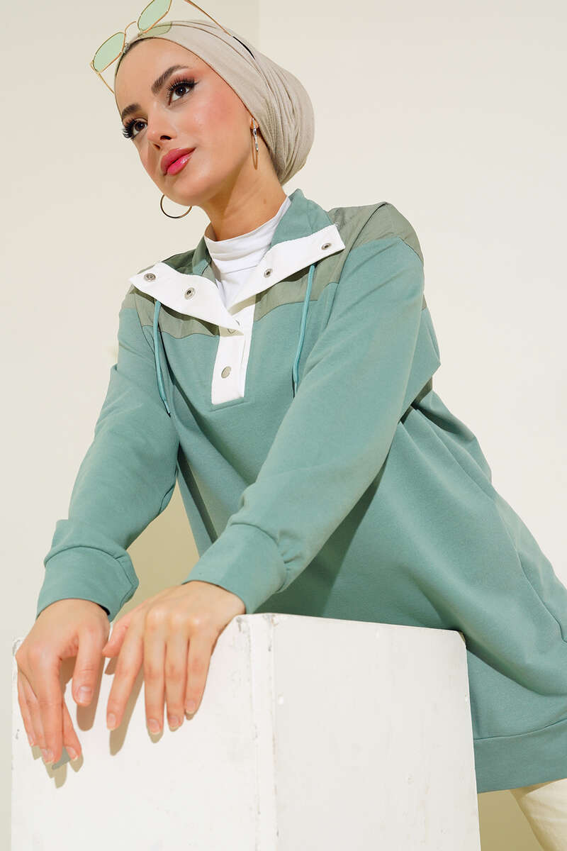 Yarım Çıt Çıt Düğmeli Tunik Çağla Yeşili