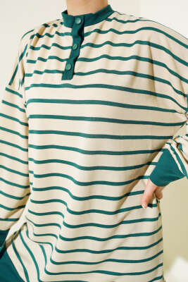 Önü Çımalı Tunik İkili Takım Yağ Yeşili