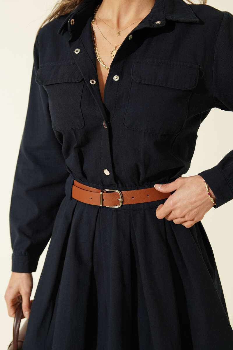 Gizli Pat Uzun Gömlek Saks