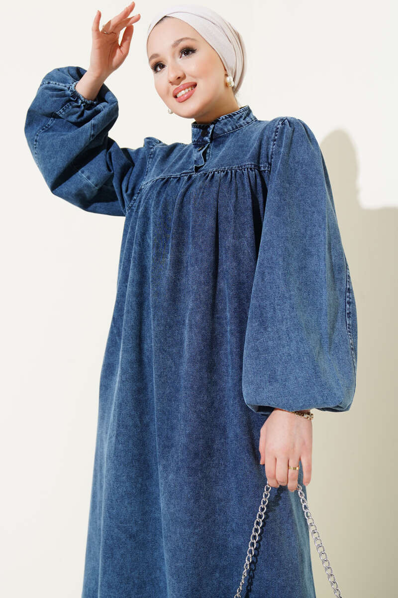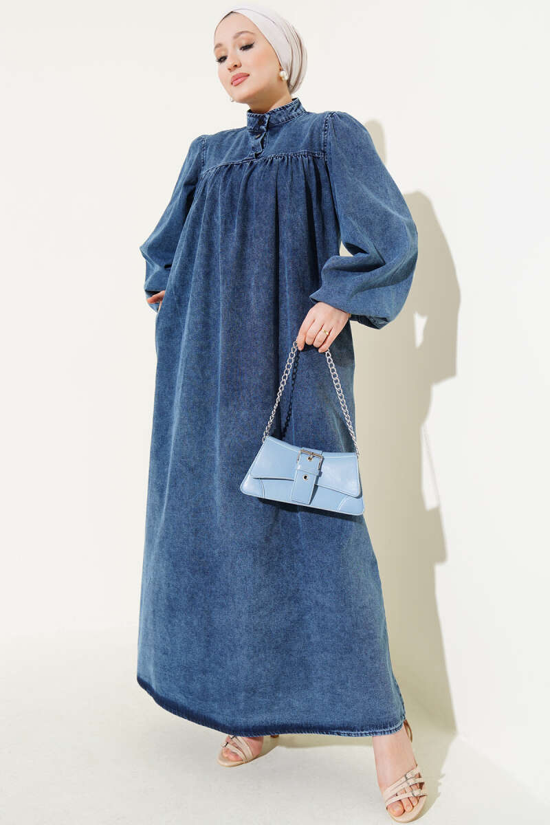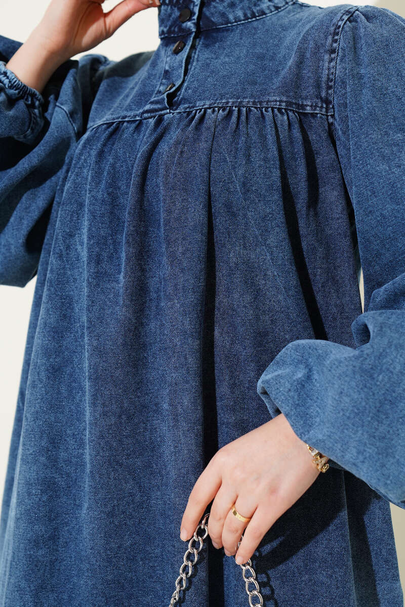 Yarım Yaka Fermuarlı Scuba Elbise Lacivert