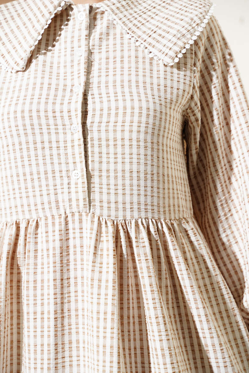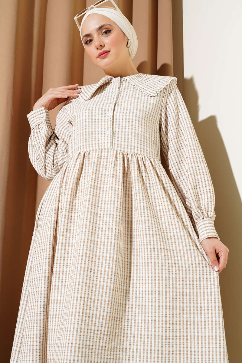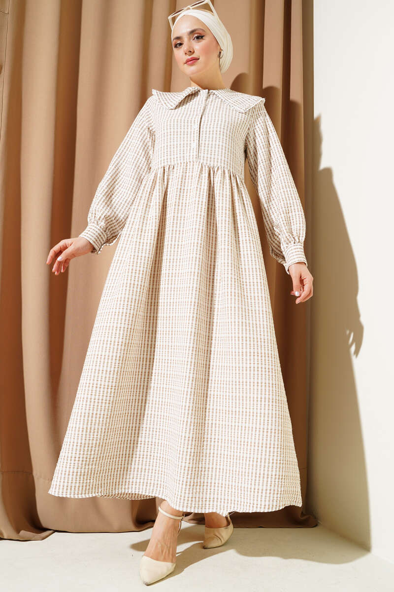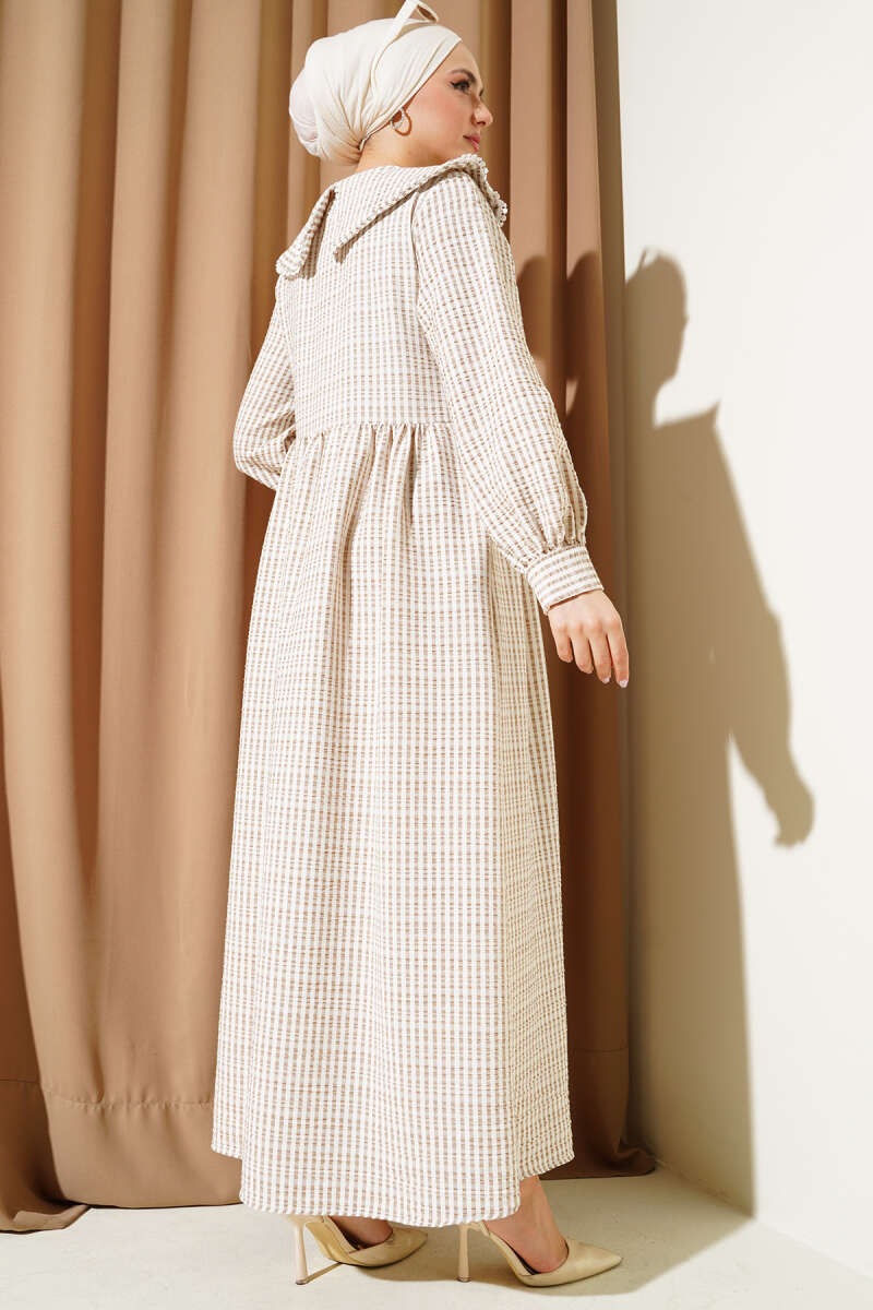 Saç Örgü Kabartmalı Triko Elbise Bej