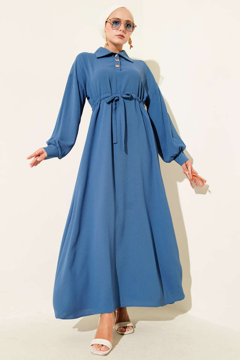 Gömlek Yaka Düğmeli Triko Elbise Nefti