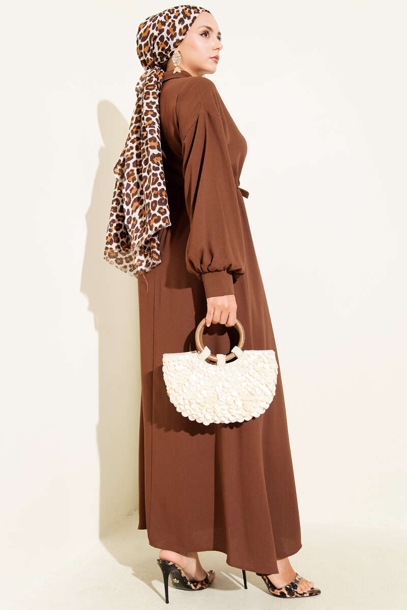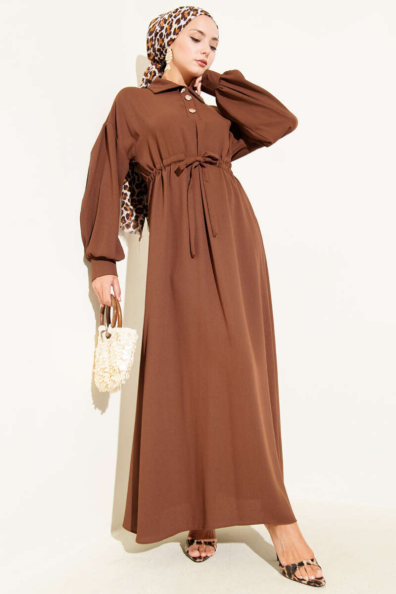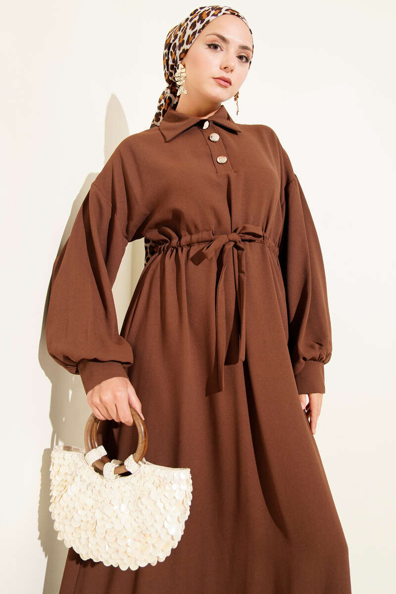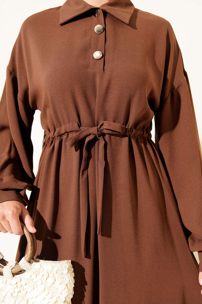 Gömlek Yaka Düğmeli Triko Elbise Kahve