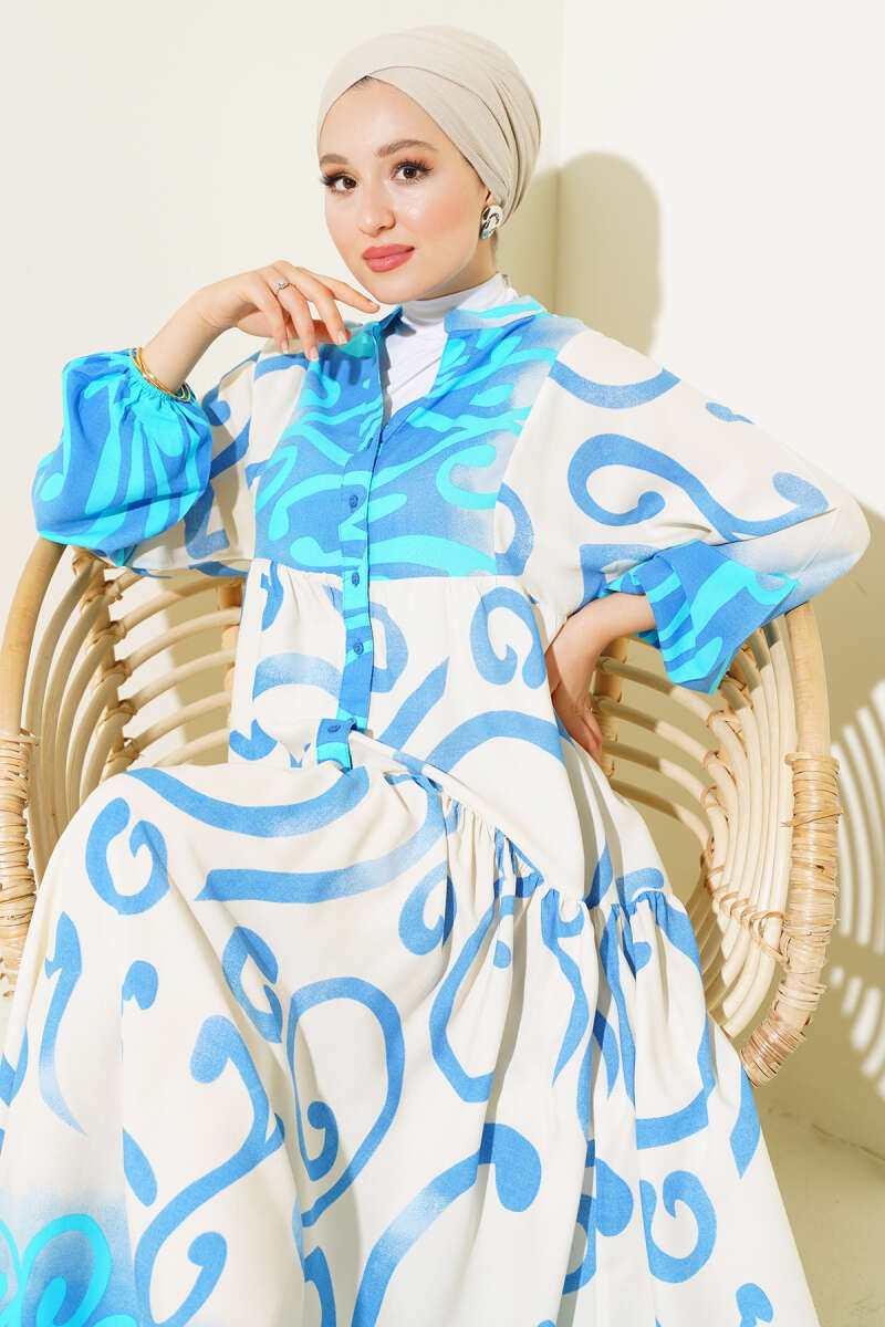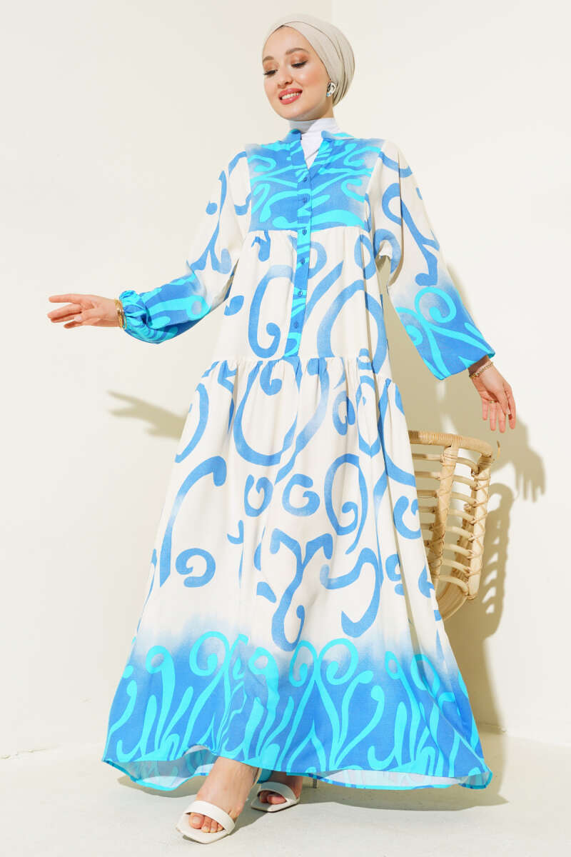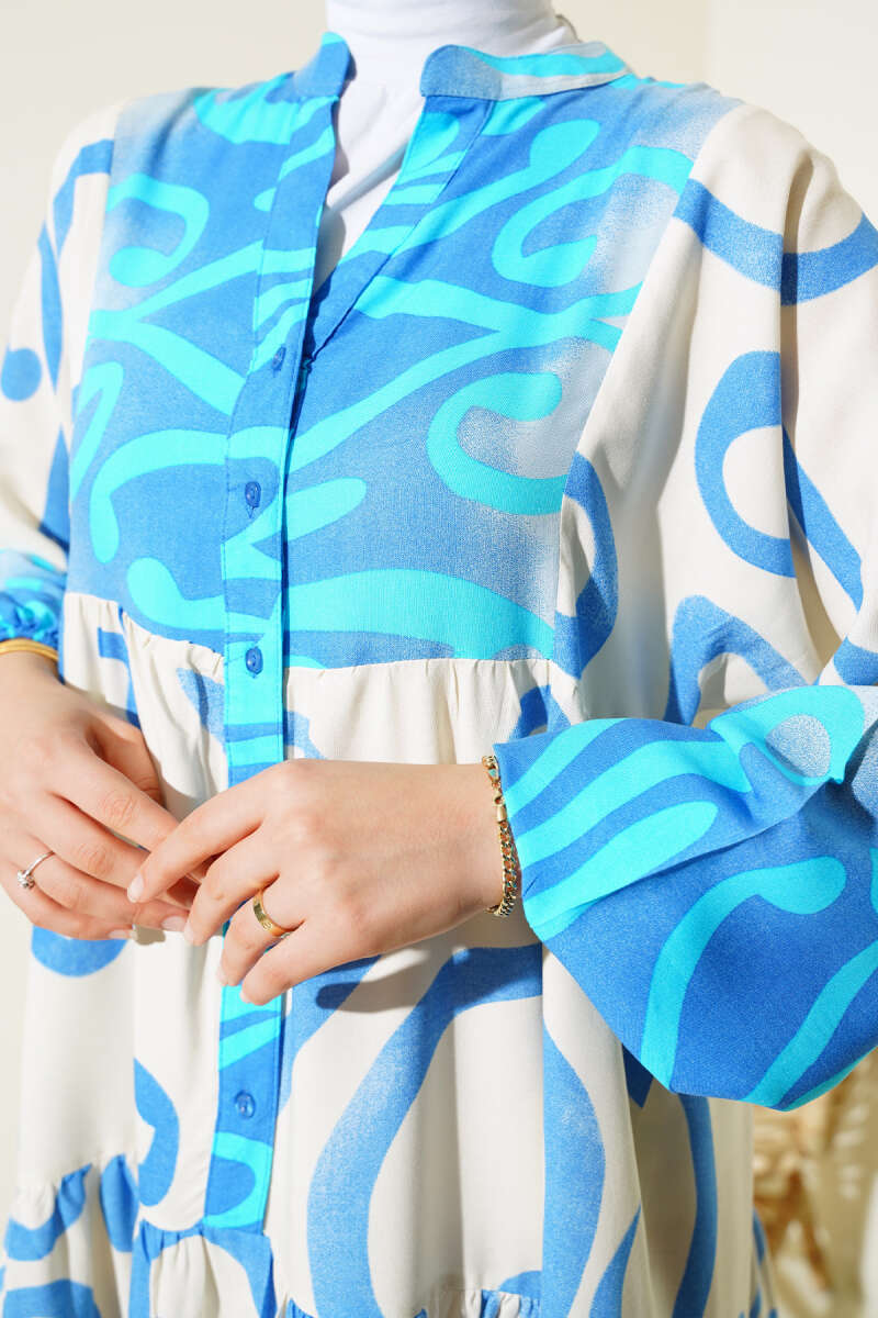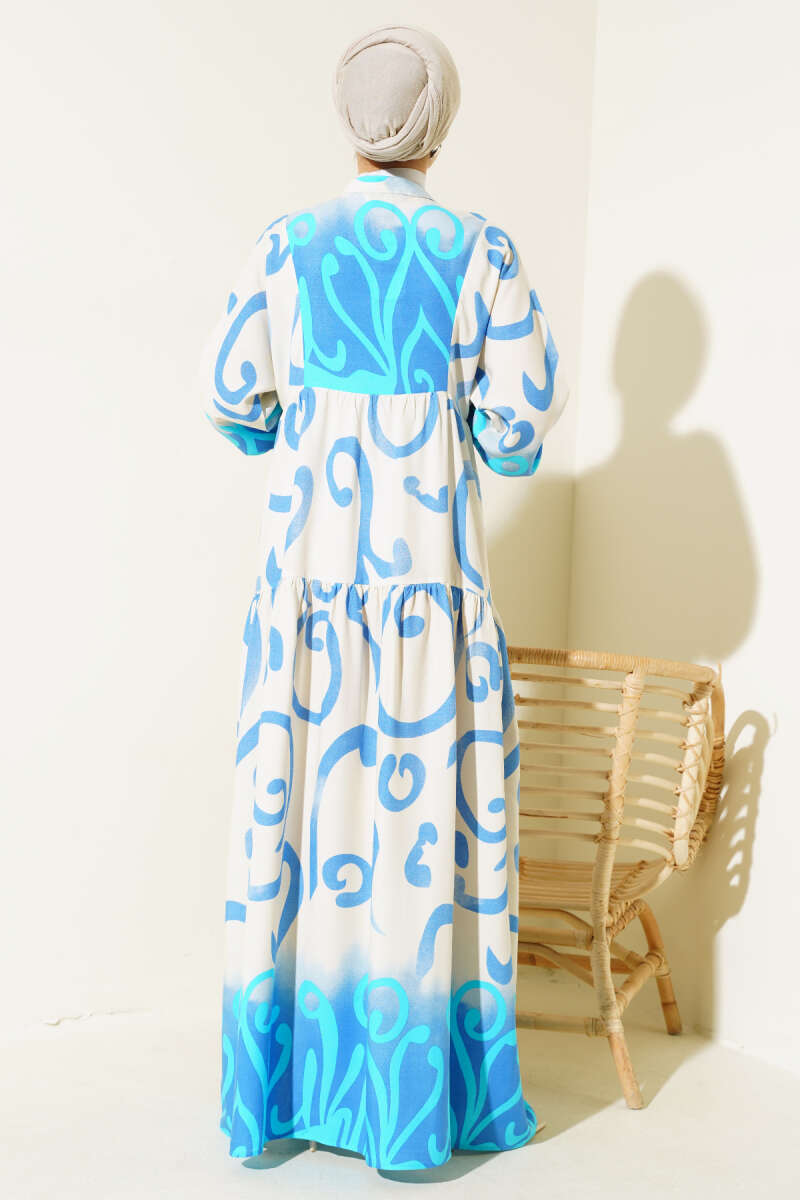 Çiçek Motifli Tül Pelerinli Abiye Elbise Bebe Mavi