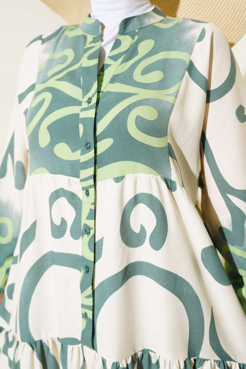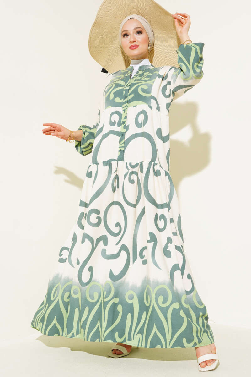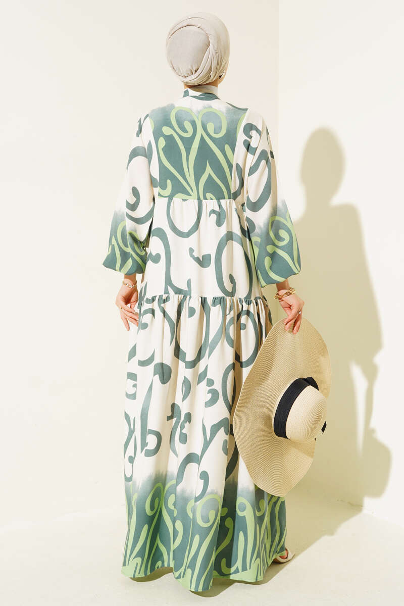 Gül Detaylı Pelerinli Abiye Elbise Haki