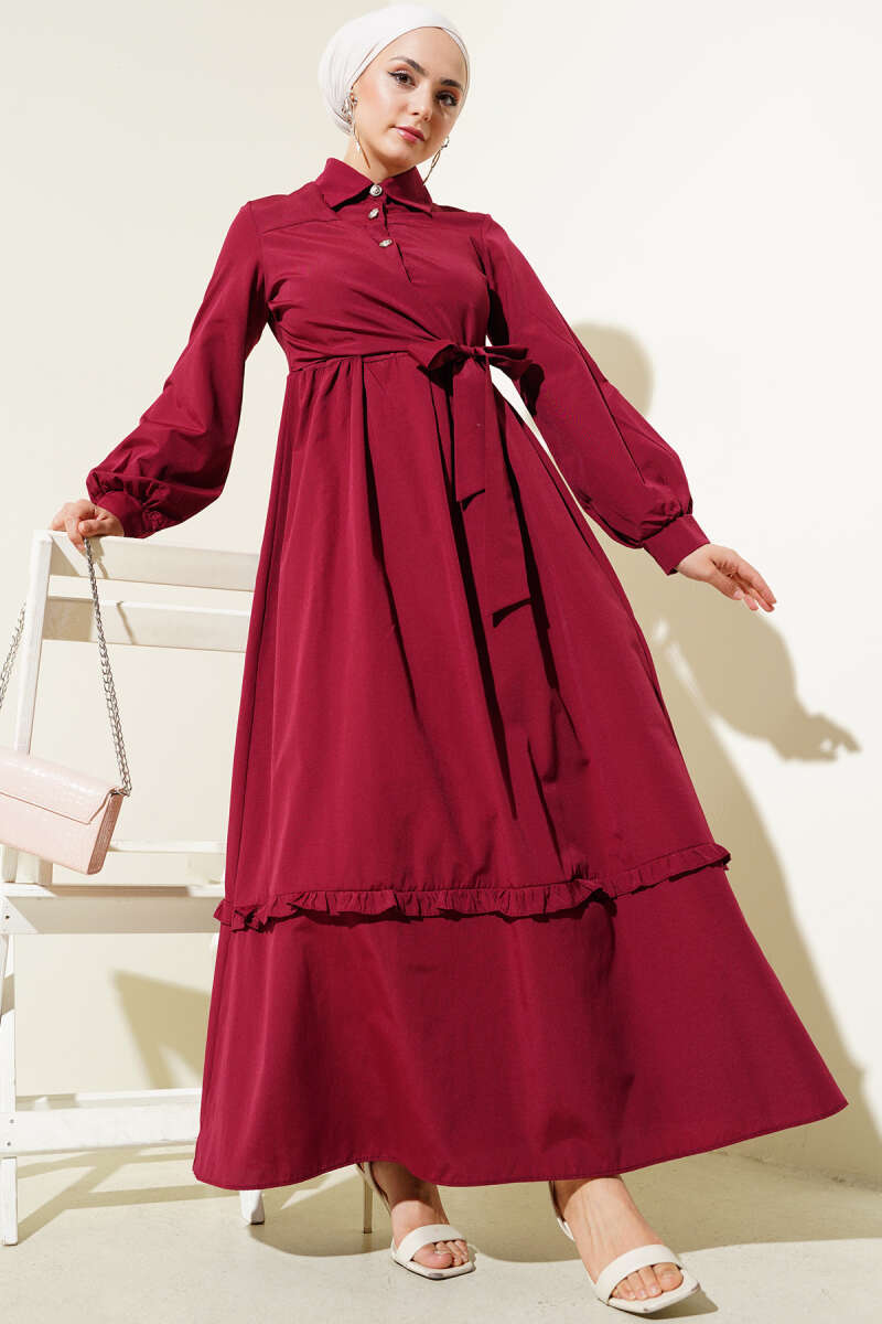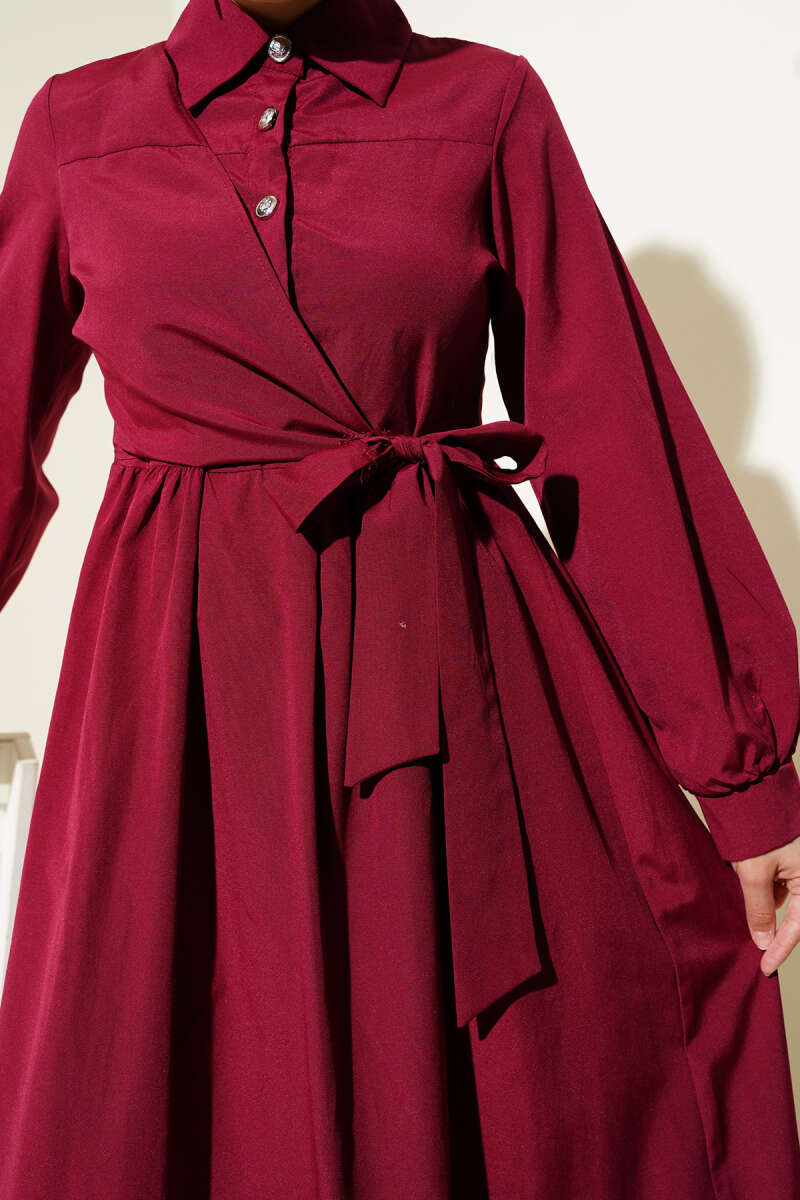 Baklava Desen Ajurlu Triko Elbise Bordo