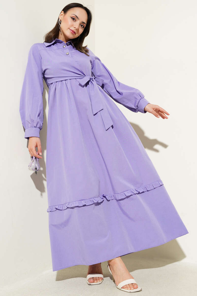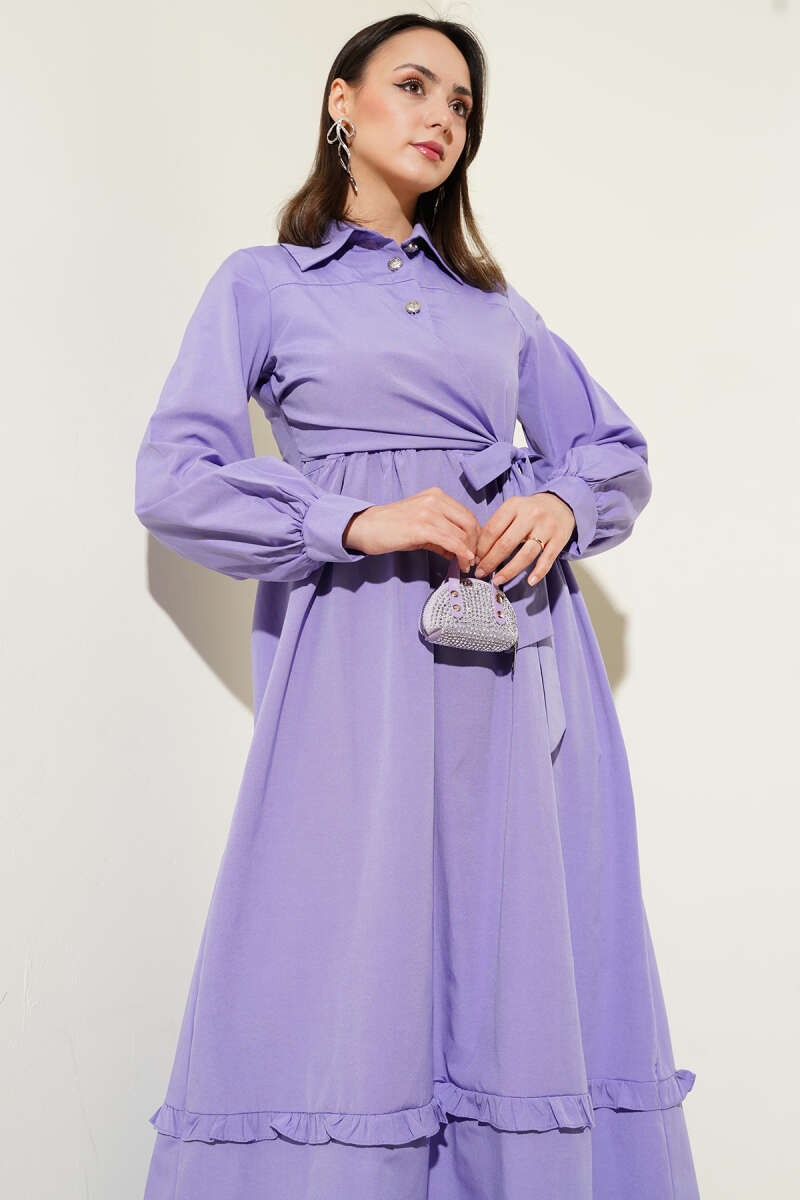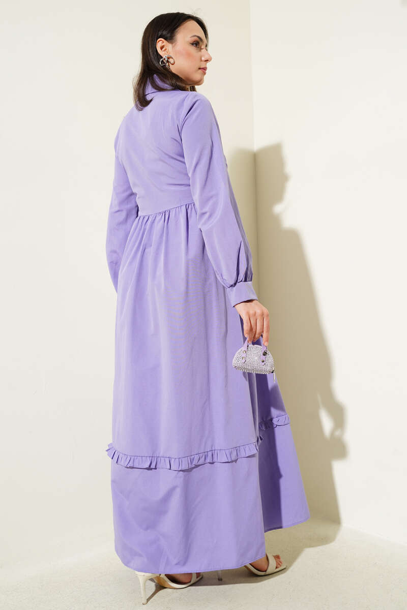 Yarım Yaka Fermuarlı Denim Elbise Açık Mavi