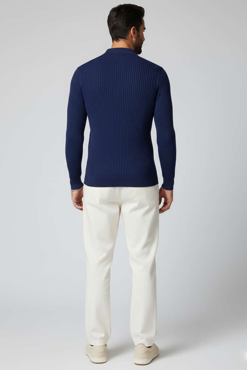 Polo Yaka Fermuarlı Triko Erkek Kazak Nefti