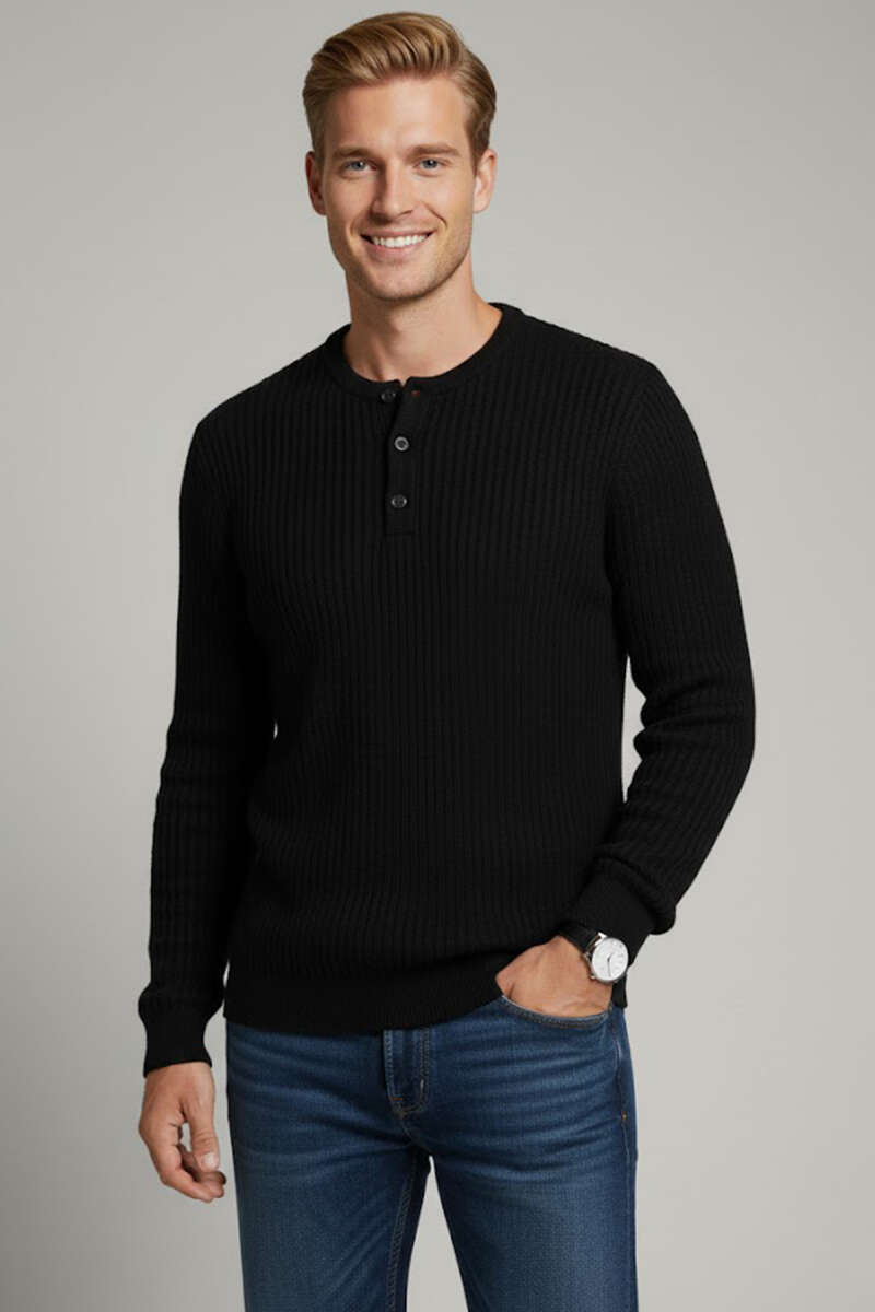 Yarım Düğmeli Fitilli Triko Erkek Kazak Lacivert