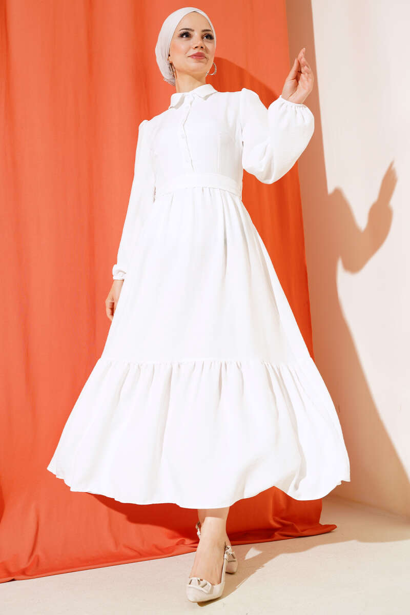 Yakası Yarım Fermuarlı Triko Elbise Taş