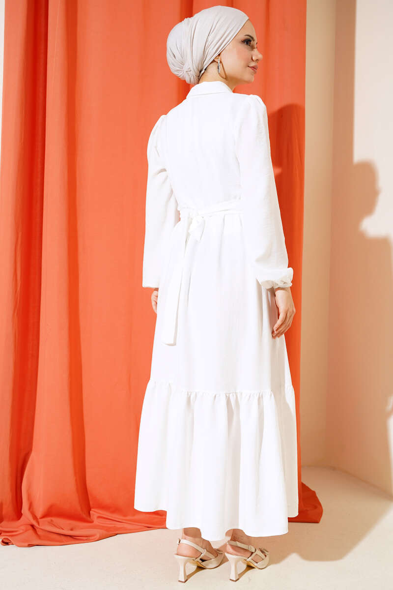 Yakası Yarım Fermuarlı Triko Elbise Yağ Yeşili