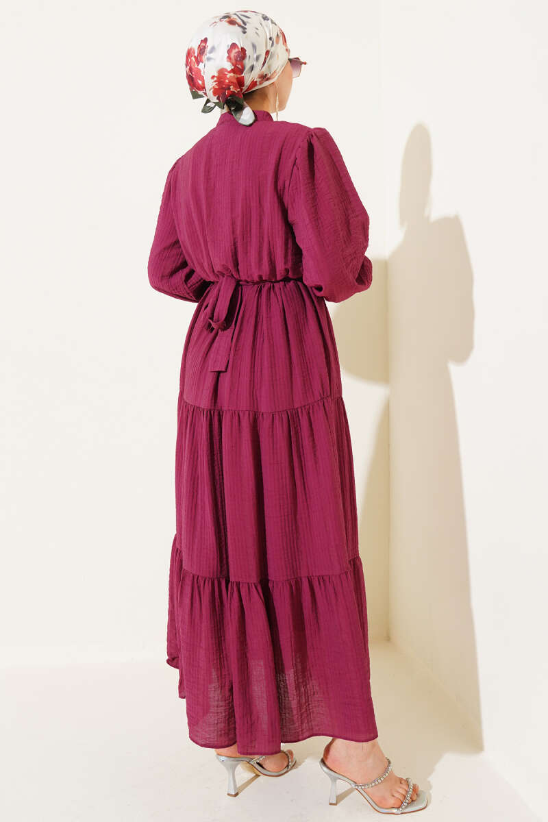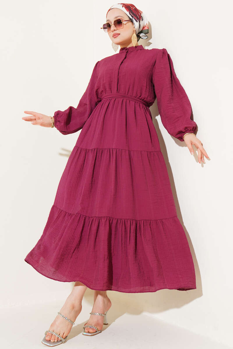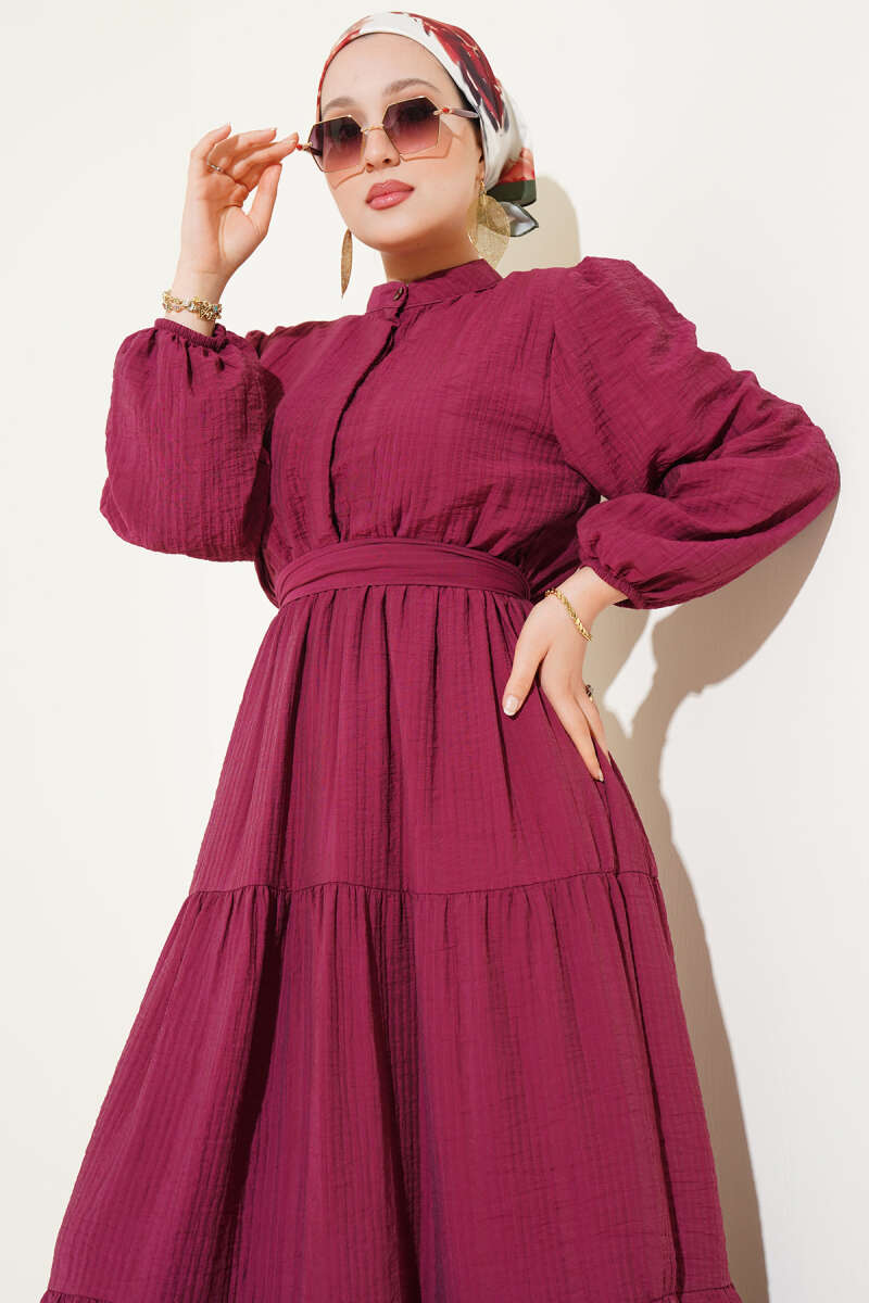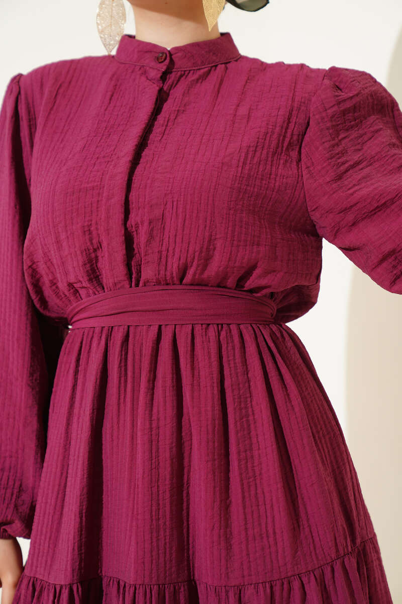 Bisiklet Yaka Bel Tünel Detaylı Elbise Bordo