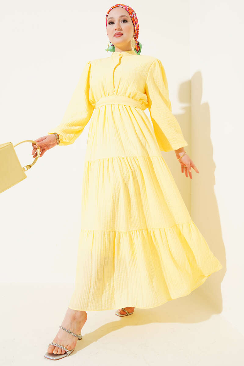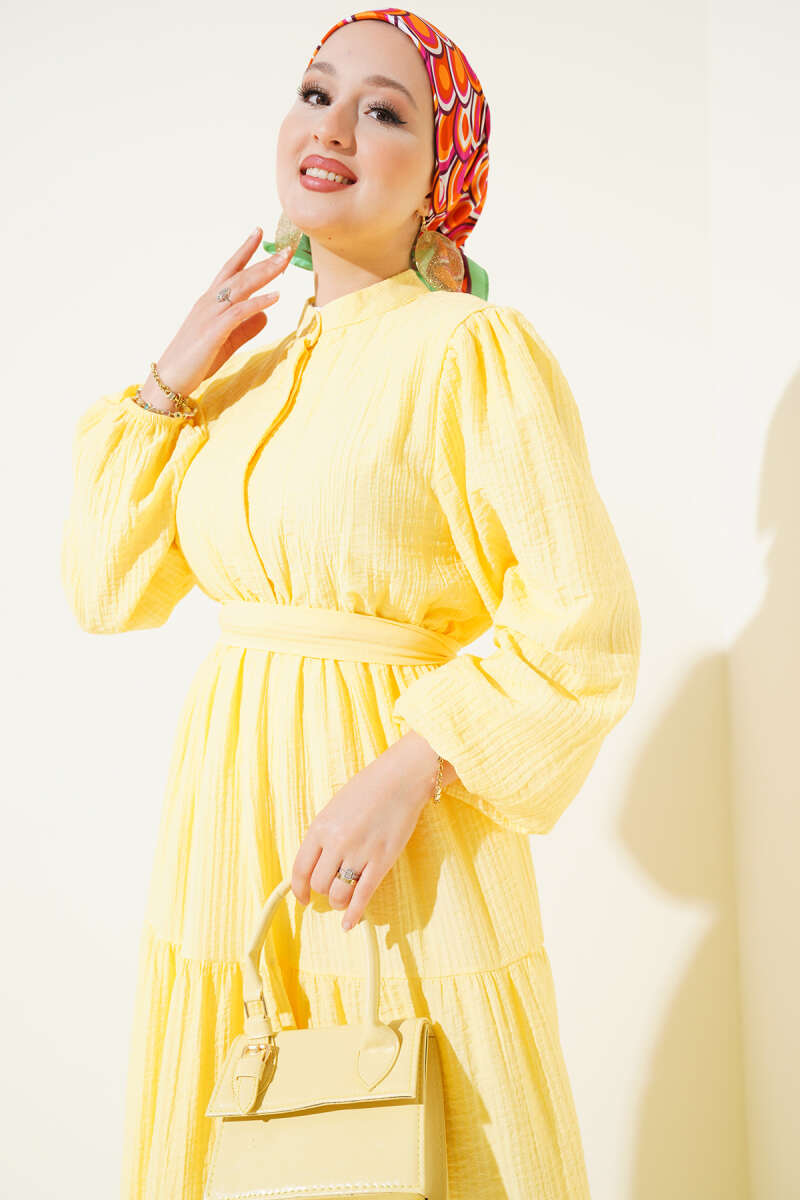 Bisiklet Yaka Bel Tünel Detaylı Elbise Haki